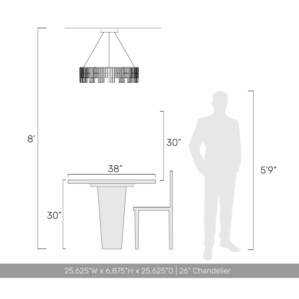Bring modern elegance into your home with the Golden Lighting Lucerna Integrated LED 26in Chandelier. Featuring a stunning Stainless Steel Gold frame, it creates a welcoming atmosphere. This chandelier, with no shade, presents an avant-garde melting effect crafted from stainless steel that dissolves into delicate prongs, achieving the pinnacle of contemporary design. Experience the quality of the Stainless Steel Gold finish, which is both durable and visually striking, featuring a warm layer of electroplated gold combined with a fine, brushed texture. Ideal for dining rooms, foyers, and other indoor spaces, this fixture is dry location rated and sloped-ceiling compatible, allowing for adjustable height (Min: 9.375", Max: 129.375") to customize your space. Overall Dimensions: 25.63"W x 6.88"H x 25.63"D. Equipped with integrated LED technology, this chandelier provides 2039 lumens of warm illumination at 3000K. Elevate your home with this stylish and durable piece that embodies modern luxury.