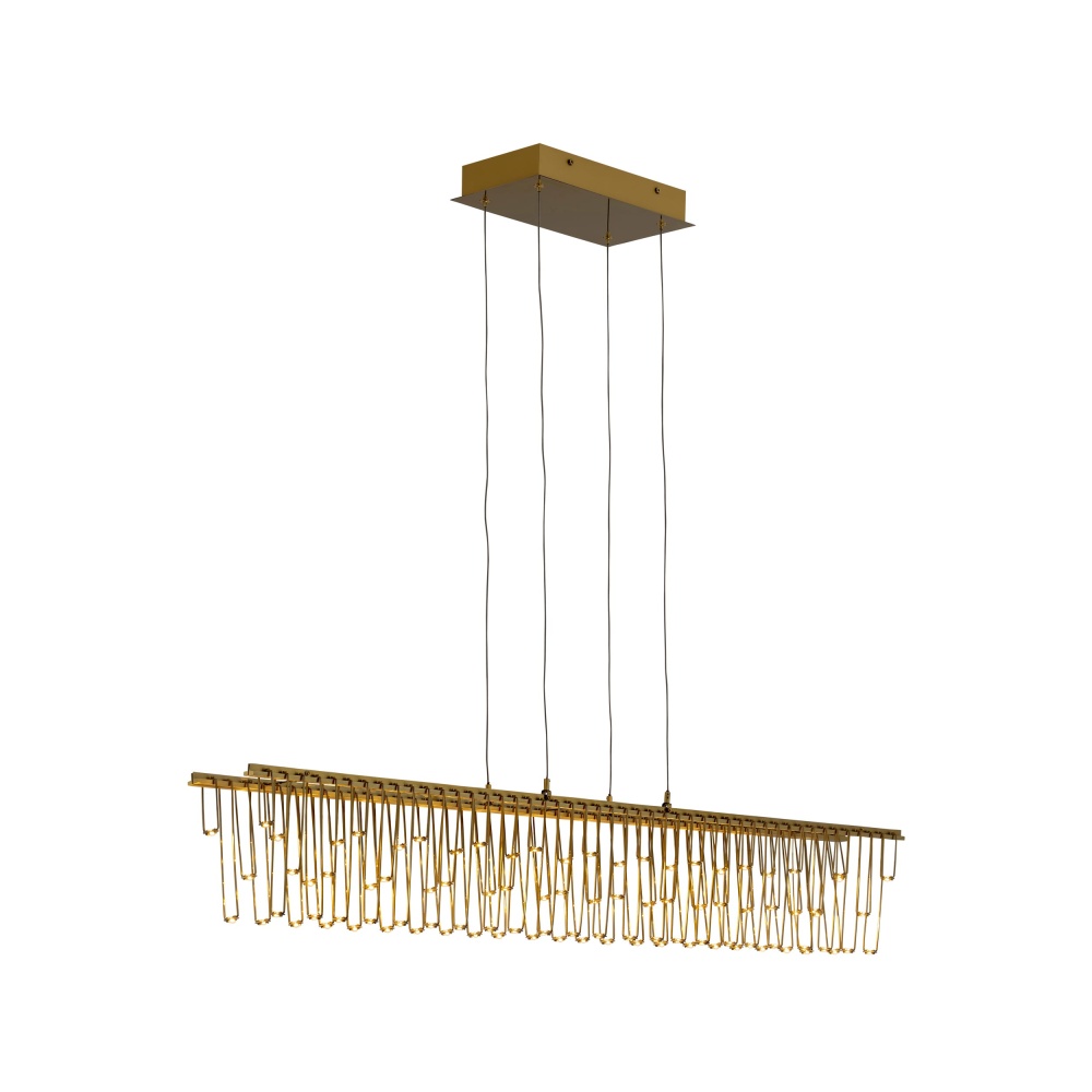 Bring modern elegance into your home with the Golden Lighting Lucerna Integrated LED Island Light. Featuring a stunning design and a Stainless Steel Gold frame, it creates a welcoming atmosphere. Crafted from stainless steel, this fixture showcases a clean geometric ring that fades into a delicate prong fringe, yielding a dramatic, sculptural effect. The beautiful finish provides unmatched durability and corrosion resistance, making this light a sophisticated choice for any kitchen space. Tailored for kitchen islands, this Dry Location Rated light is ideal for indoor areas not exposed to moisture. Its adjustable height feature allows for customization, fitting seamlessly on angled ceilings with a minimum height of 10" and a maximum of 129.375". Overall Dimensions: 47.5"W x 7.5"H x 4.75"D Integrated LED Technology provides brilliant, energy-efficient illumination, producing 3024 rated lumens at a 3000K CCT for a warm glow, perfect for culinary tasks. Elevate your kitchen with this modern island light, designed to impress while ensuring quality and style.