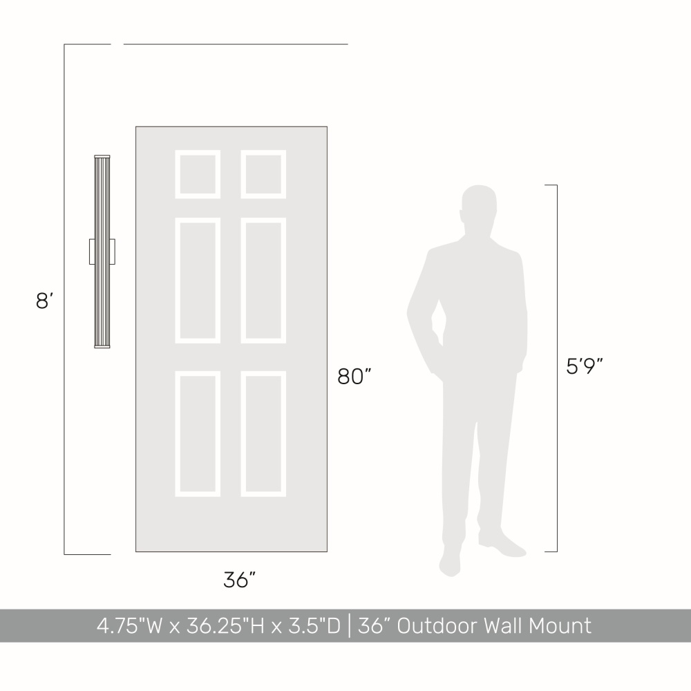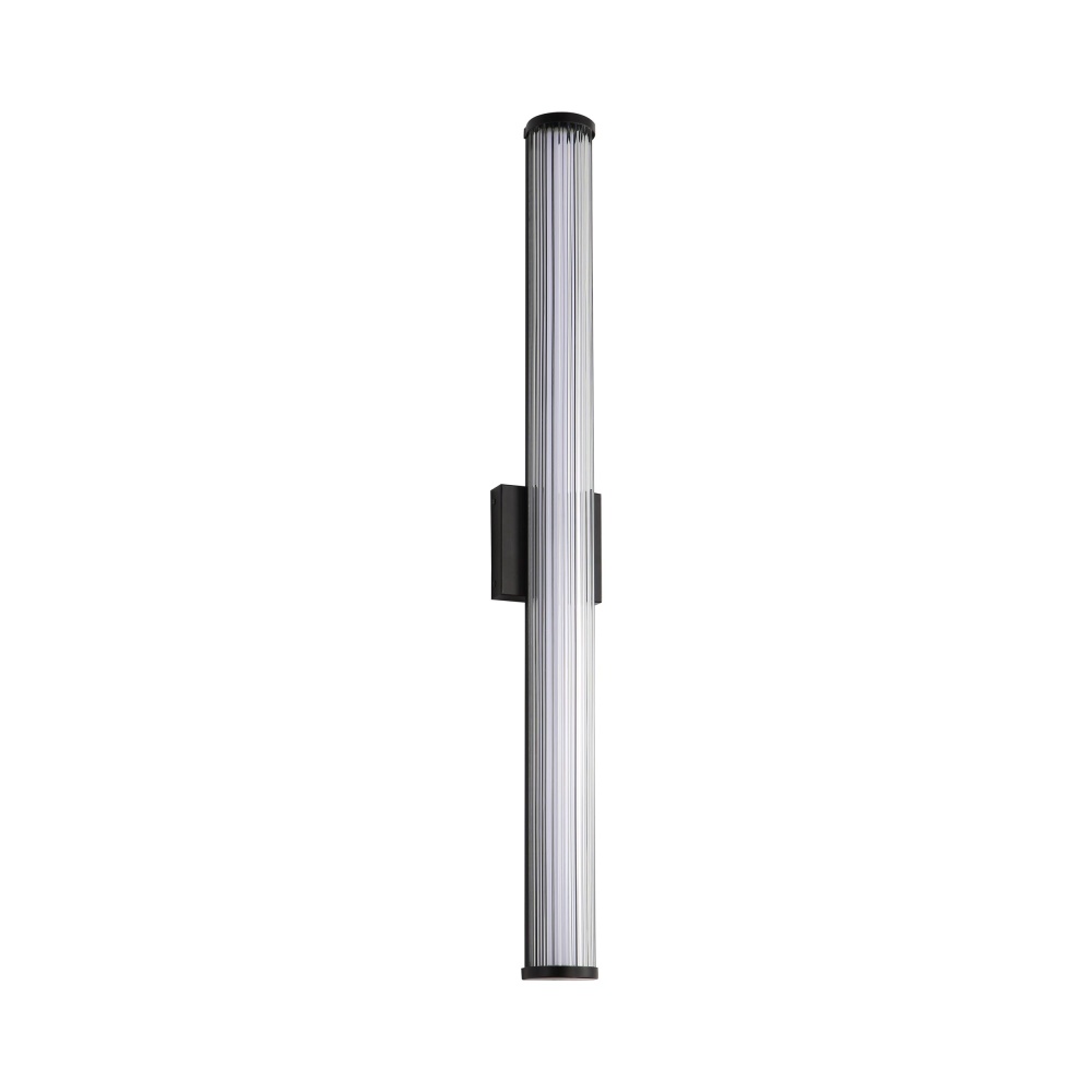 Bring modern elegance into your home with the Golden Lighting Rodara Integrated LED 36in Outdoor Wall in Matte Black. Featuring a glass shade and a matte black frame, it creates a welcoming atmosphere. The clear ribbed glass shade allows for unobstructed, bright illumination with a glossy finish, defined by fine, vertical ribs that beautifully refract light. This timeless design complements various styles, from modern to industrial. The matte black finish captures the essence of contemporary style, harmonizing with diverse decor themes. Functional and inviting at entryways, patios, and garage doors, the fixture is wet location rated for resilience against rain, snow, and other elements. Crafted from durable powder-coated aluminum, it promises a high-quality finish. Overall Dimensions: 4.75"W x 36.25"H x 3.5"D with integrated LED technology offering 2880 rated lumens at a warm 3000K glow. Enhance your outdoor settings with a balance of style, durability, and practicality.