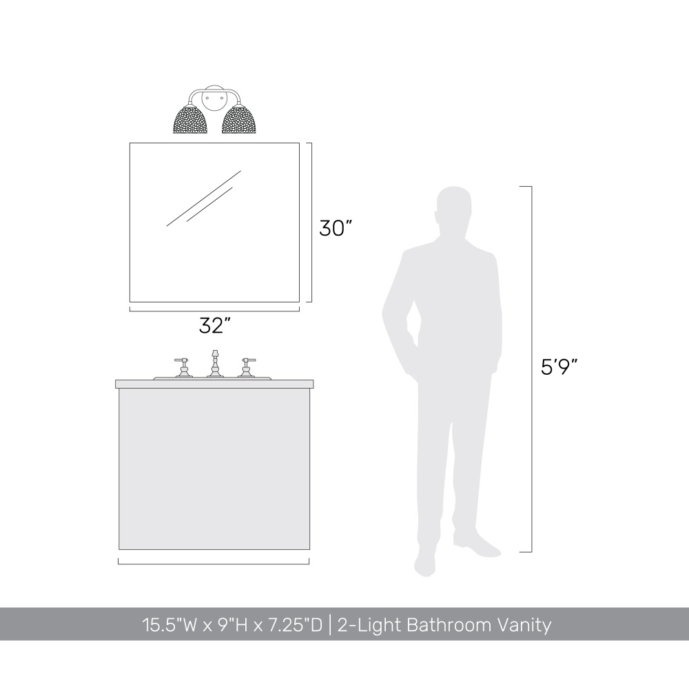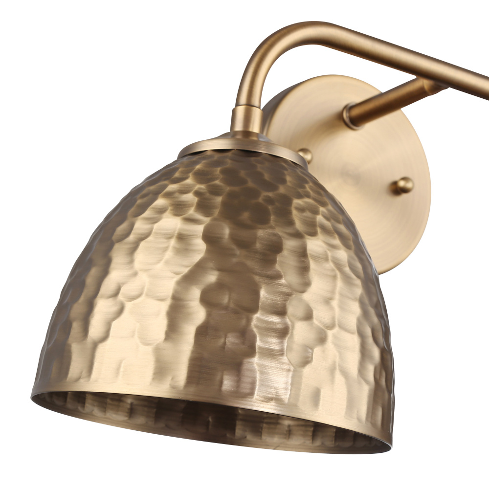 Bring traditional elegance into your home with the Golden Lighting Shepard 2-light Vanity. Featuring a metal shade and a Modern Brass frame, it creates a welcoming atmosphere. The matching metal shade provides a polished, sophisticated look, ensuring a harmonious flow of light that enhances your space's elegance. Our Modern Brass finish adds a touch of warmth and style, complementing various decor themes. Ideal for brightening bathrooms while providing practical task illumination, this vanity light is damp location rated for versatility in inclusive spaces. With overall dimensions of 15.5"W x 9"H x 7.25"D, it requires two E26 medium base bulbs (not included) with a maximum wattage of 100 each. Elevate your interior with this refined fixture, designed to add charm and functionality.