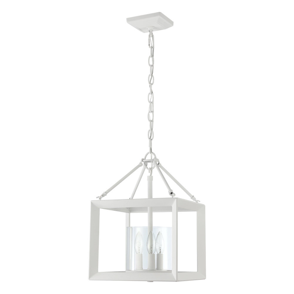 Bring modern elegance into your home with the Golden Lighting Smyth 3-light Chandelier in Natural White. Featuring a glass shade and a Natural White frame, it creates a welcoming atmosphere. The clear glass shade offers brilliant, unobstructed light, polished to a high-gloss shine that allows the beauty of the bulb and fixture's design to take center stage. This versatile glass complements a wide array of styles. Our Natural White finish offers a softer, more organic take on a classic, with a chalky, non-reflective matte surface that gives a tactile feel, integrating seamlessly into modern farmhouse or minimalist designs. Perfect for dining rooms, living spaces, and bedrooms, this chandelier is dry location rated for indoor spaces not subject to moisture. It features a convertible design with adjustable height from 20.25" to 92.25" for installation as either a semi-flush mount or pendant light. Overall Dimensions: 11.75"W x 17.25"H x 11.75"D. Requires 3 E12 Candelabra base bulbs (not included) with a maximum wattage of 60 per bulb. The Smyth Chandelier offers a balanced and enduring look, elevating your decor with quality and grace.