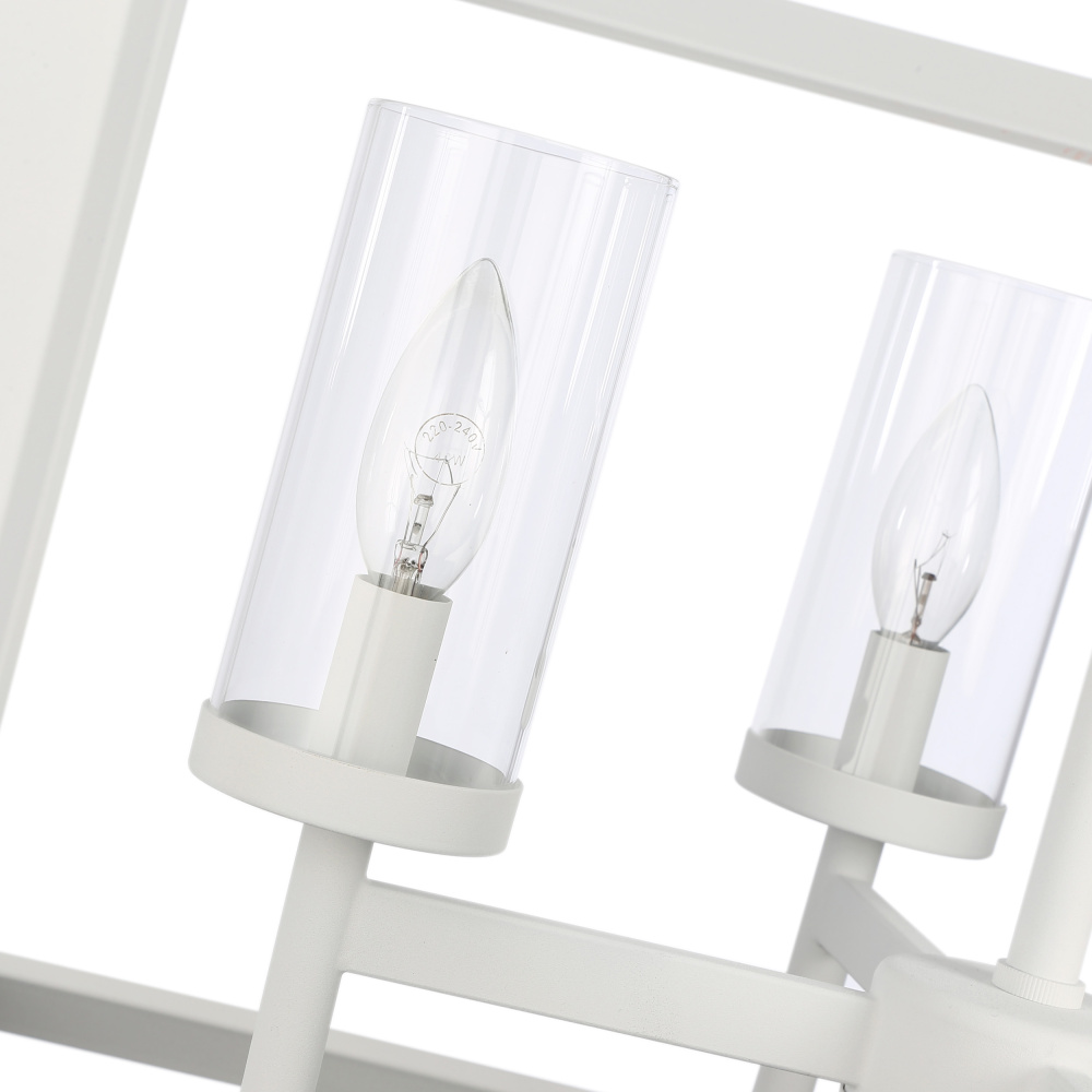 Bring a touch of organic elegance into your home with the Golden Lighting Smyth 4-light Chandelier. Featuring a glass shade and a natural white frame, it creates a welcoming atmosphere. The glass shade provides brilliant, unobstructed light, enhancing the clean lines of the chandelier while ensuring bright illumination. The natural white finish adds a soft, grounded feel with a chalky texture, making it a perfect foundational element for modern farmhouse designs. This chandelier is ideal for dry locations, making it perfect for dining rooms and foyers. It boasts sloped-ceiling compatibility and an adjustable height ranging from 28" to 99" for versatile installations. Overall Dimensions: 21"W x 26"H x 21"D. Requires 4 E12 Candelabra base bulbs (not included) at a maximum wattage of 60 per bulb. Elevate your home's aesthetic with the timeless design of Golden Lighting.