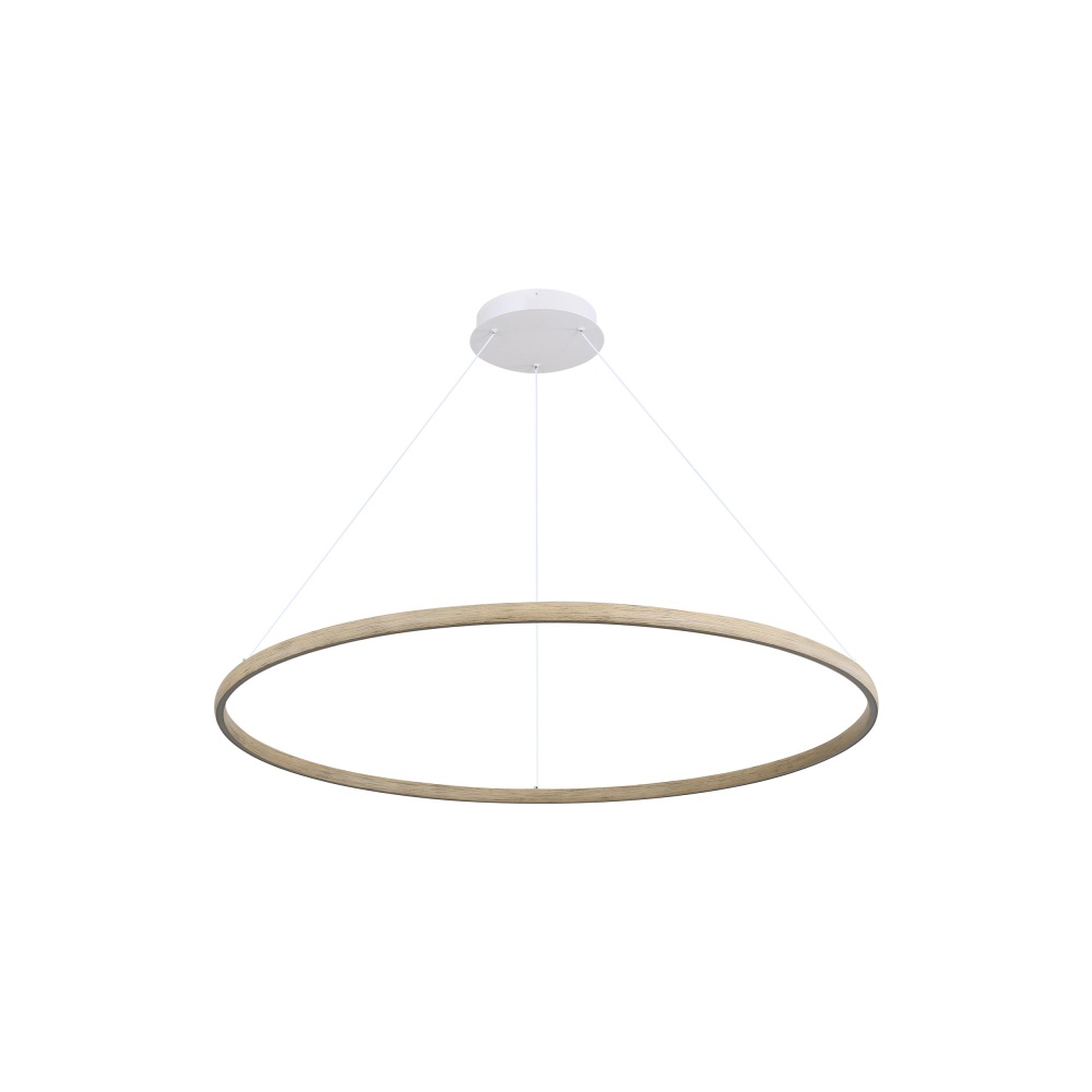 Bring modern elegance into your home with the Golden Lighting Veritas Integrated LED 47in Chandelier in Driftwood. This sleek design features an attractive Driftwood finish that captures the serene beauty of coastal elements. Utilizing integrated LED technology, this chandelier provides brilliant, energy-efficient illumination with a warm 3000K glow. The Driftwood finish realistically replicates sun-bleached wood with soft grays and pale beiges, enhancing any space's natural appeal. Perfect for dining rooms and foyers, this chandelier is dry location rated, ensuring it thrives in indoor spaces such as bedrooms and hallways. Its sloped-ceiling compatibility and adjustable height (30" to 123") make installation a breeze, allowing flexibility for various ceiling types. Dimensions: Overall Dimensions: 47.25"W x 1.13"H x 47.25"D. The integrated LED bulbs produce 5400 lumens, ensuring functional and stylish illumination. Elevate your surroundings with the perfect blend of quality and aesthetics in this elegant chandelier.