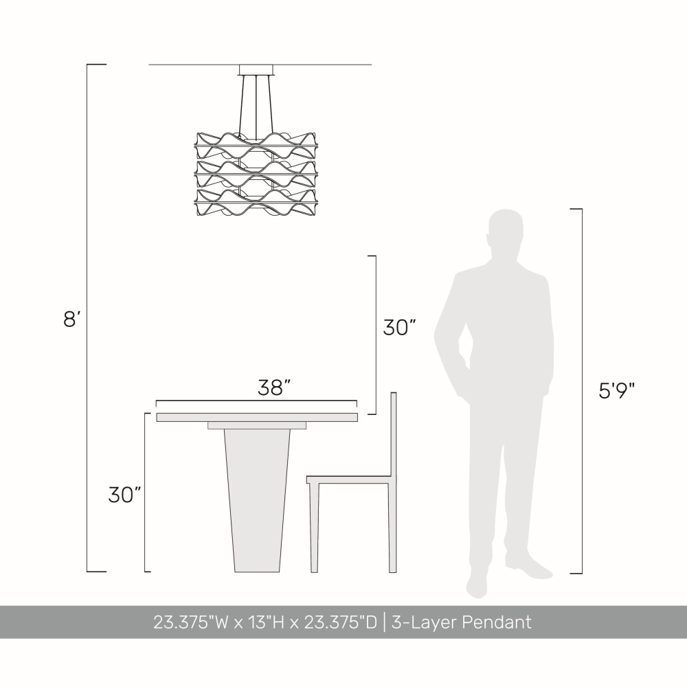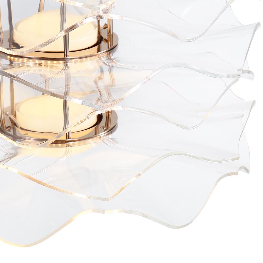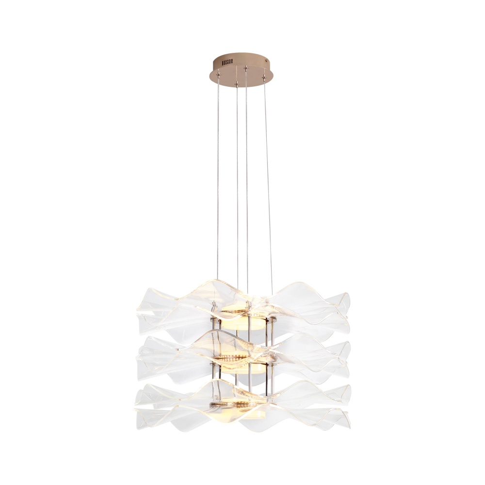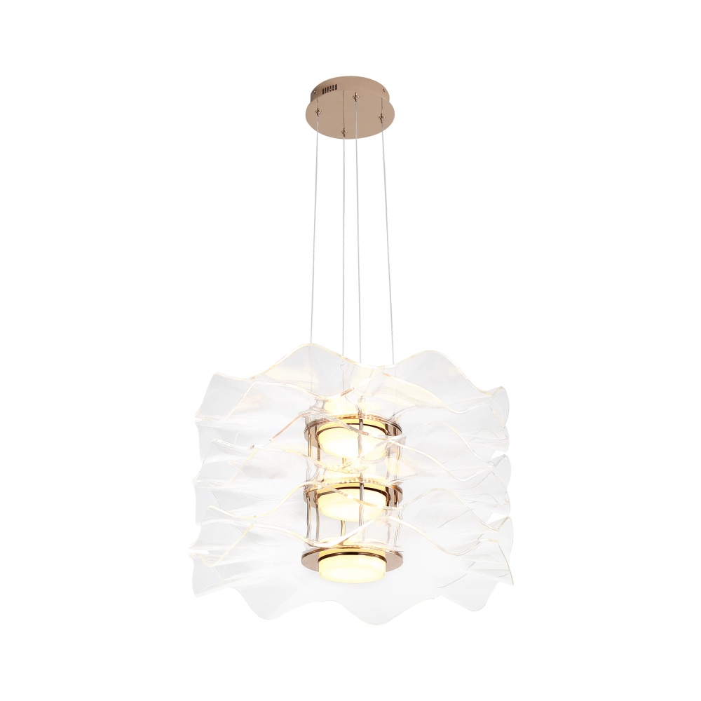 Bring modern sophistication into your home with the Golden Lighting Vetrina Integrated LED 3-tier Pendant in Light Gold. This exquisite pendant features an acrylic shade that enhances the brilliance of the light, ensuring an enchanting glow throughout your space. The clear acrylic shade offers unobstructed illumination, showcasing the unique design of the light. The light gold finish, crafted through a meticulous electroplating process, elevates the aesthetic with its subtle champagne undertones, making it perfect for contemporary settings. Designed for dry locations, this fixture is also sloped-ceiling compatible and height-adjustable, fitting seamlessly into any room. With overall dimensions of 23.38"W x 13"H x 23.38"D, it boasts integrated LED technology that delivers 5598 lumens at a warm 3000K color temperature. Enhance the beauty of your interiors with a pendant light that embodies artistry and modern function.