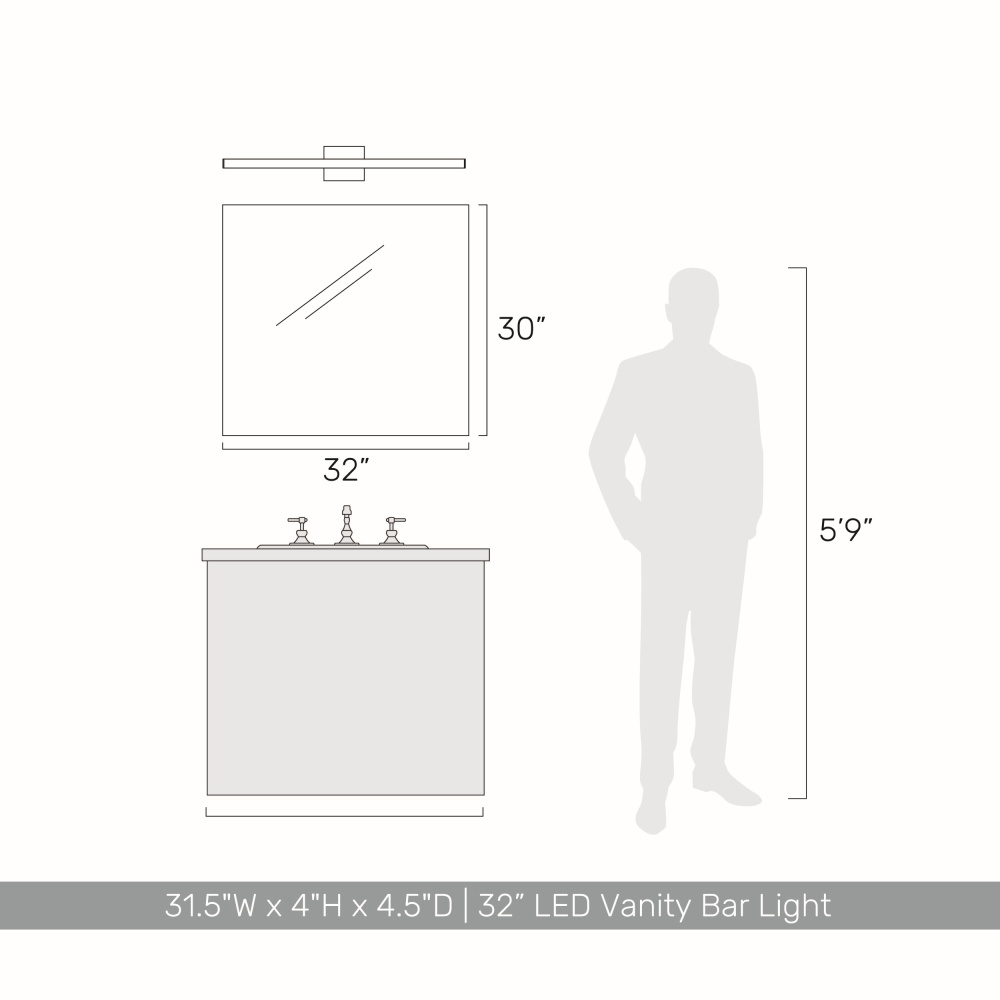 Bring serene elegance into your home with the Golden Lighting Vireo Integrated LED 32in Vanity in Driftwood. Featuring a sleek design without a shade, it creates a welcoming atmosphere. The driftwood finish replicates the look of sun-bleached wood, enhancing any space's light and airy feel. Perfect for brightening up bathrooms, it is damp location rated, suitable for covered and semi-enclosed spaces with occasional moisture. The overall dimensions are 31.75"W x 4"H x 4.5"D, equipped with integrated LED technology providing 1080 rated lumens and a 3000K warm glow. Illuminate your space with this stylish yet practical lighting solution, perfect for any contemporary design.