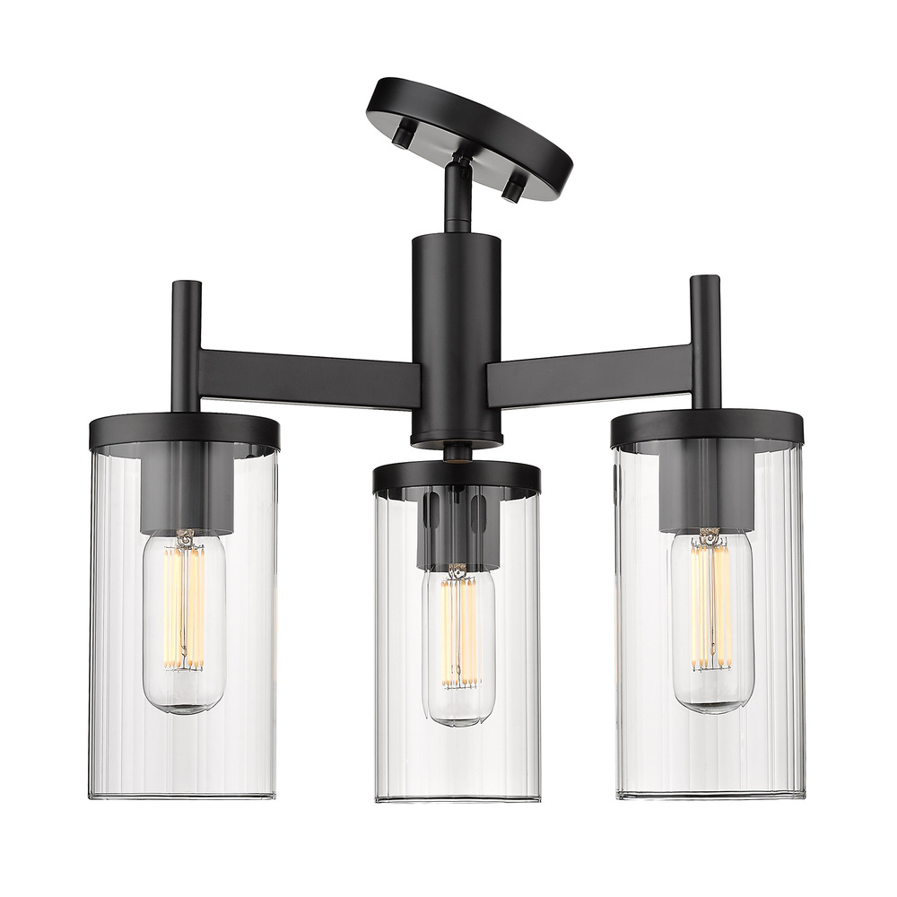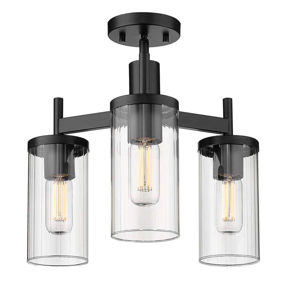 7011-3SF BLK-CLR - Golden Lighting Winslett 3-light Semi-Flush Mount in Matte Black