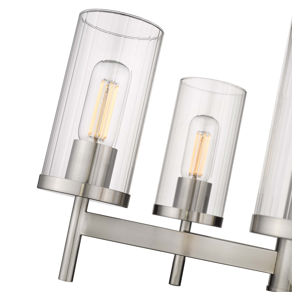 Elevate your bathroom with the Golden Lighting Winslett 3-light Vanity in Brushed Champagne Brass. Featuring glass shades and a brushed champagne brass frame, it creates a luxurious atmosphere that is both stylish and functional. The clear ribbed glass shades provide brilliant light, beautifully showcasing the design while ensuring unobstructed illumination for your grooming needs. Our brushed champagne brass finish offers a modern sophistication, blending the warmth of brass with a soft sheen that enhances any space with quiet luxury. Designed for areas like bathrooms, this vanity light is damp location rated for spaces with occasional moisture. Overall Dimensions: 23.13"W x 11.5"H x 5.75"D. Requires 3 E26 Medium base bulbs (not included), max 60 wattage each. Complete your bath decor with this exquisite fixture that embodies both elegance and quality.