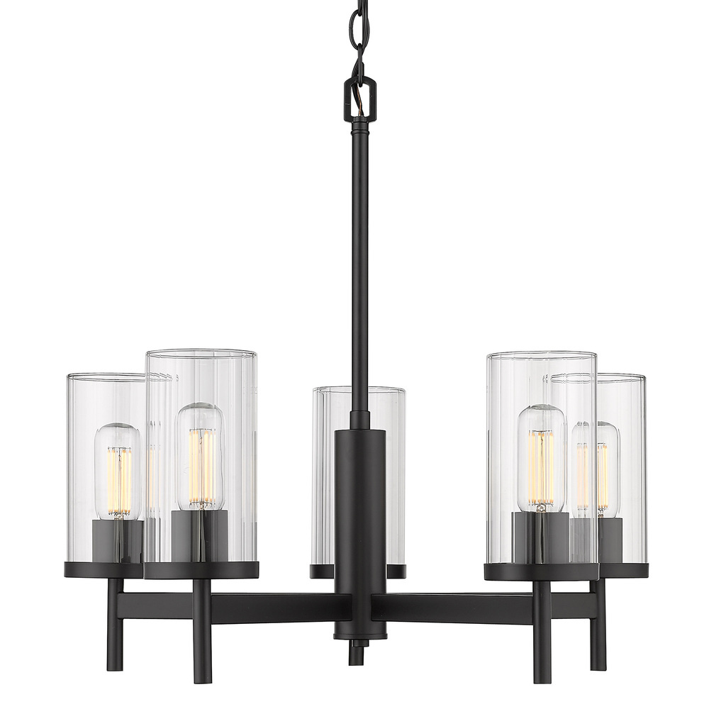 7011-5 BLK-CLR - Golden Lighting Winslett 5-light Chandelier in Matte Black
