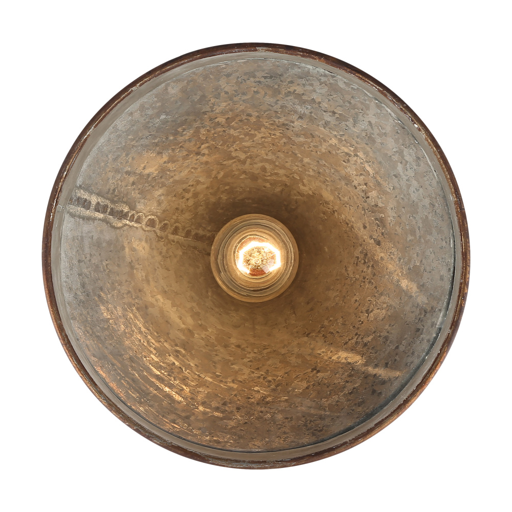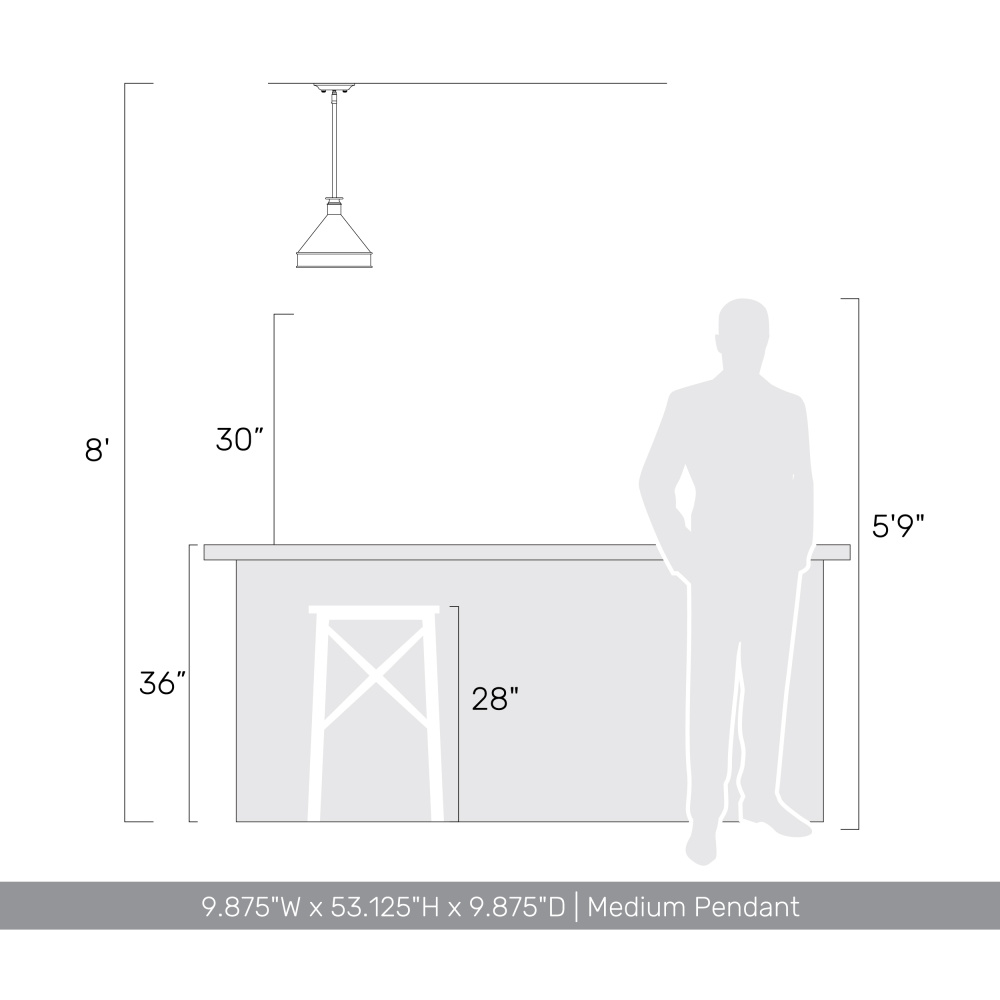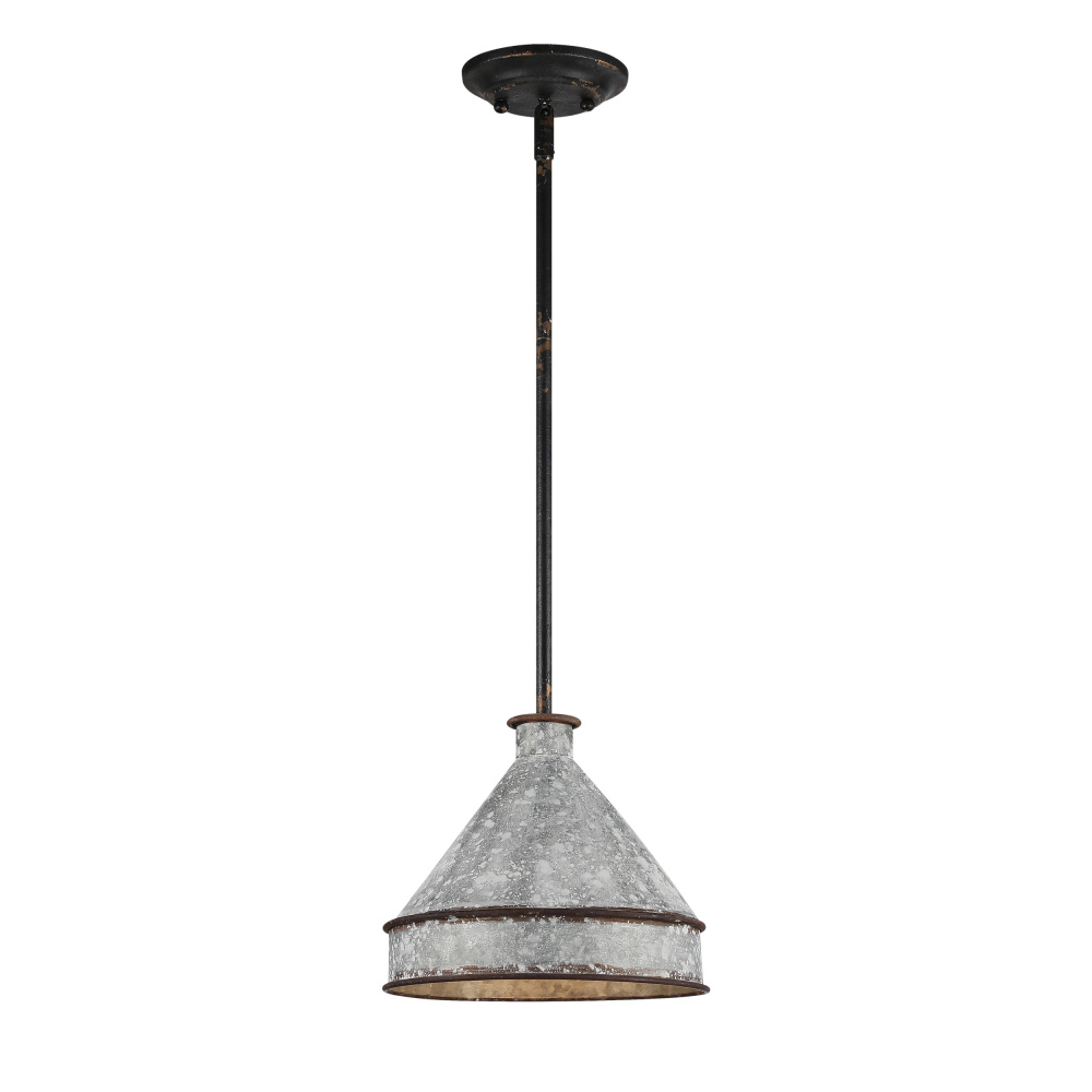 Bring traditional elegance into your home with the Wry Lighting Jasper 1-light Pendant in Antique Black Iron. Featuring a metal shade, it provides focused illumination in kitchens, dining rooms, and entryways. The heavily weathered galvanized steel shade creates a warm light, embodying rustic and farmhouse charm. The Antique Black Iron finish is deeply textured and tells a story of resilience, making it a striking addition to any space. This damp location rated fixture suits areas with occasional moisture, such as covered porches and bathrooms. It can be easily installed on sloped ceilings with an adjustable height option ranging from 53.125" to 11.125". Overall dimensions are 9.88"W x 53.13"H x 9.88"D, and it requires one E26 Medium base bulb (not included) with a maximum wattage of 100. Customers adore this stylish pendant for its combination of rustic design and unique character, making it a popular choice.
