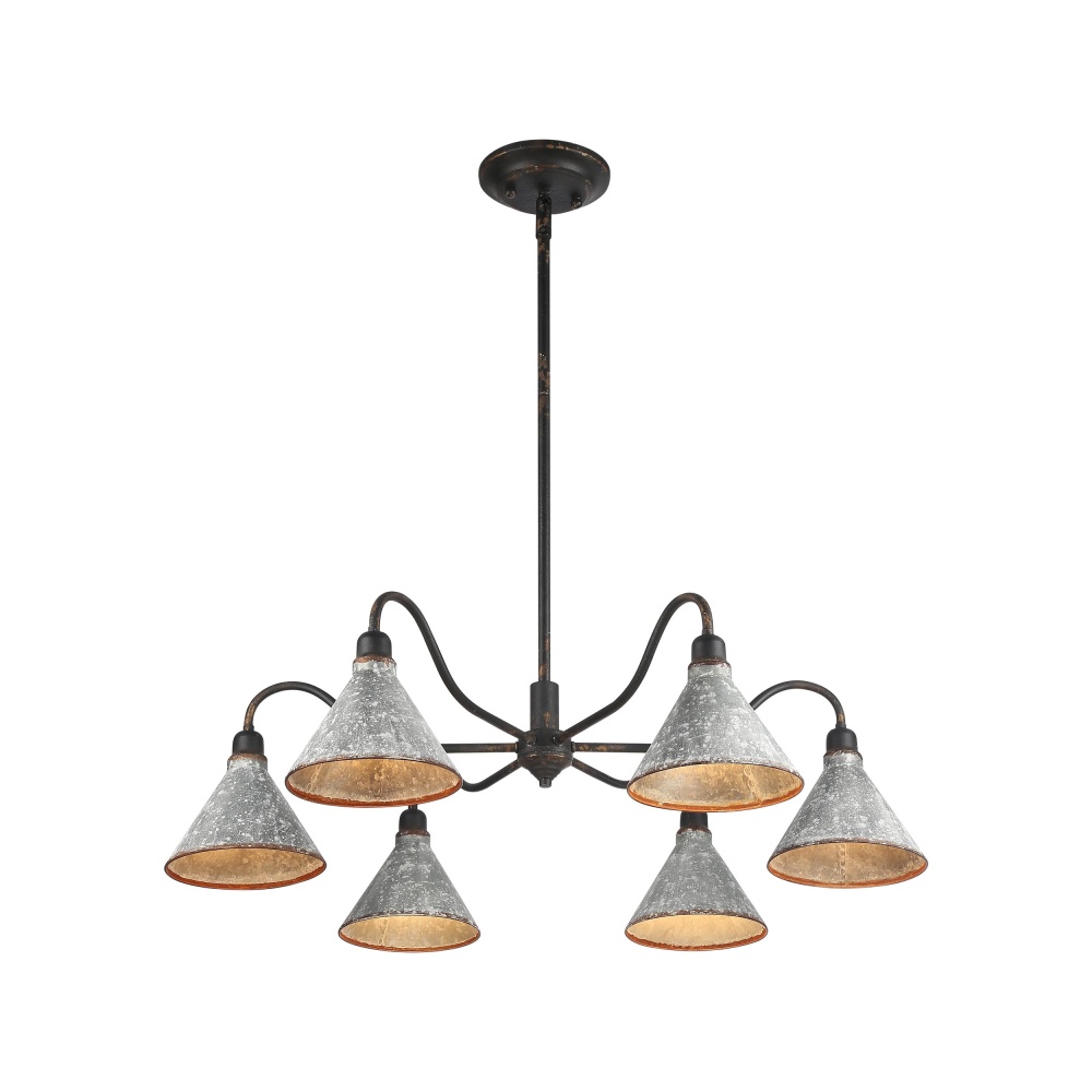 0877-6 ABI-GV - Wry Lighting Jasper 6-light Chandelier in Antique Black Iron