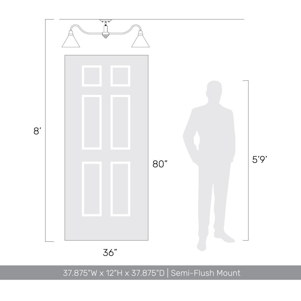 Wry Lighting Jasper 2-light Flush Mount in Antique Black Iron