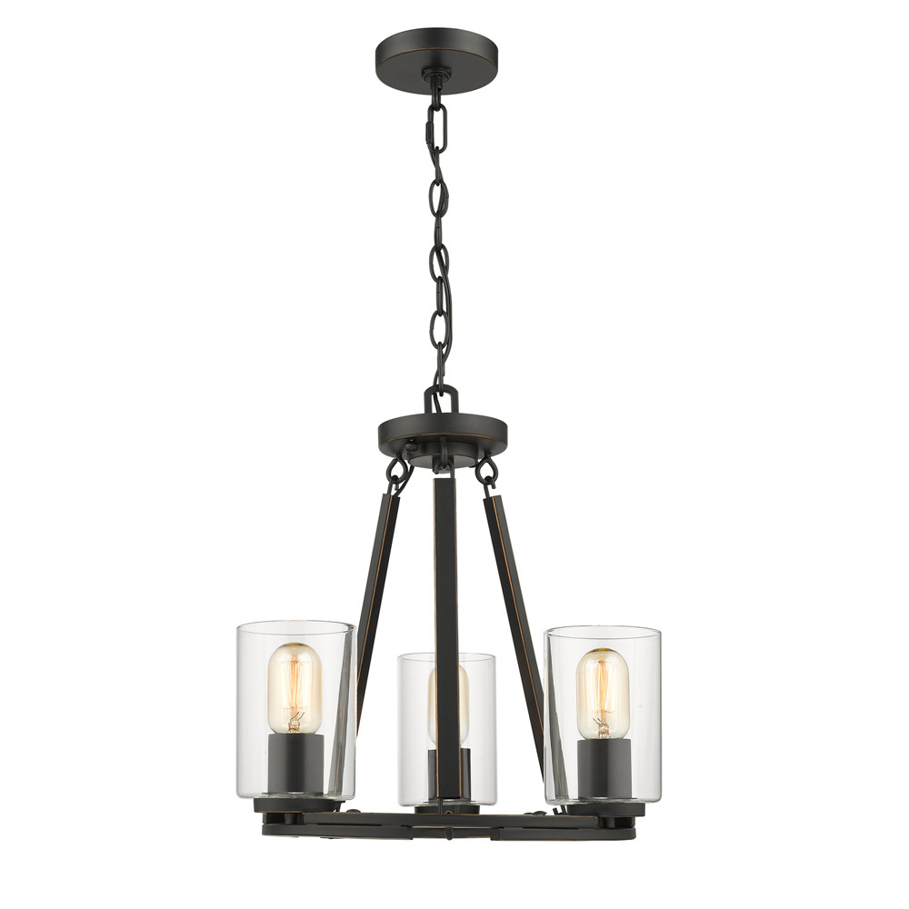7041-3 BLK-CLR - Wry Lighting Monroe 3-light Chandelier in Matte Black