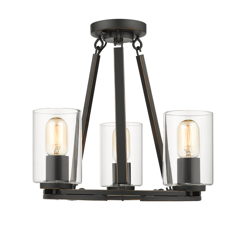 7041-SF BLK-CLR - Wry Lighting Monroe 3-light Semi-Flush in Matte Black