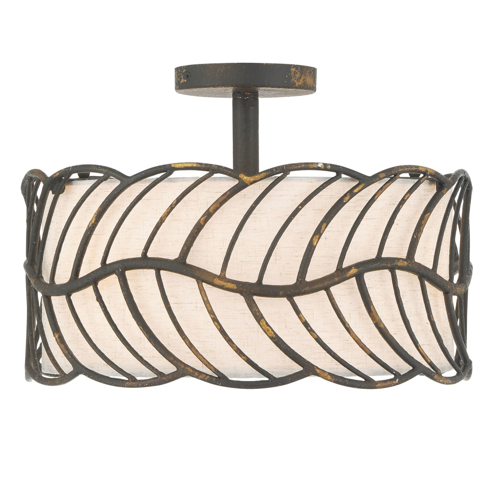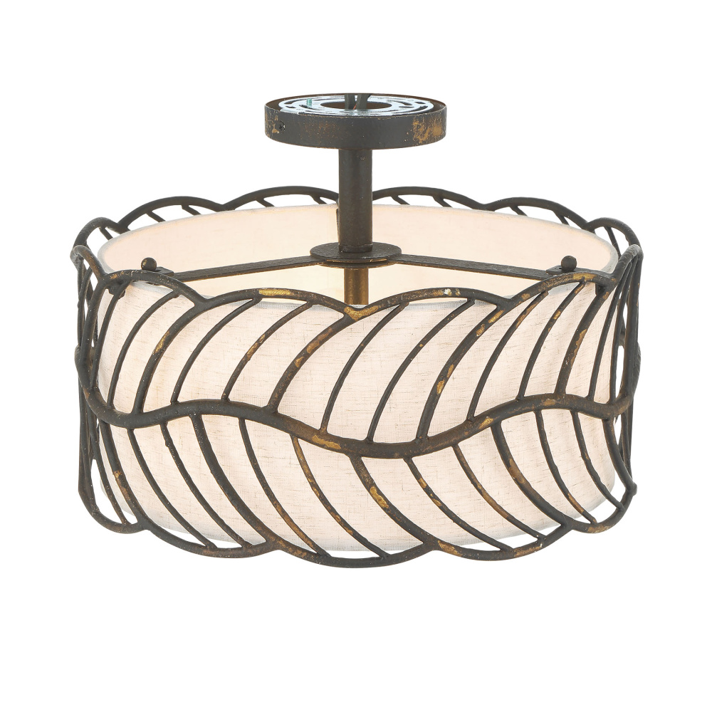 Bring nature-inspired elegance into your home with the Wry Lighting Simbolo 3-light Semi-Flush Mount in Antique Black Iron. Featuring a fabric shade and an antique finish, it creates a welcoming atmosphere.