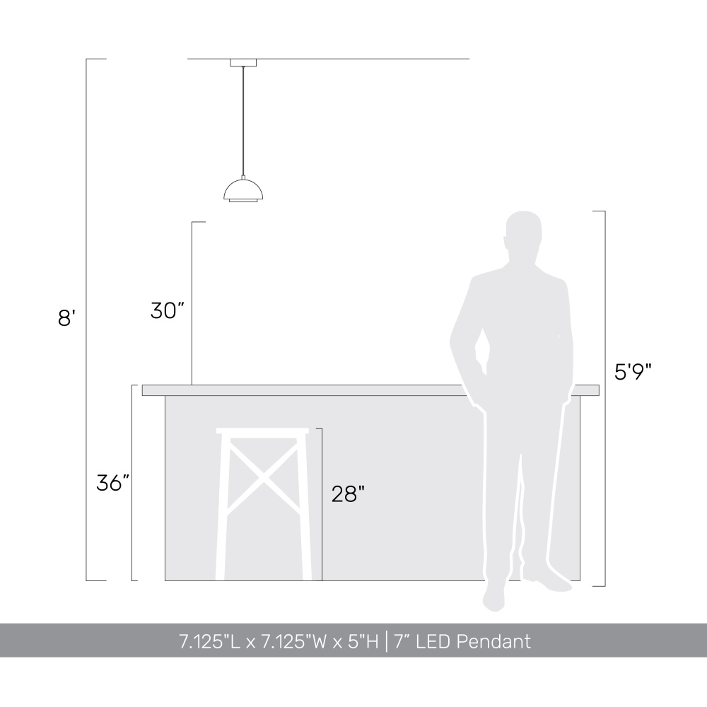 Bring modern elegance into your home with the Wry Lighting Solsken Integrated LED 7in Pendant in Sand Black. Featuring a metal shade and a Sand Black finish, it creates a welcoming atmosphere. The pendant's metal shade beautifully showcases an Aged Copper accent finish, adding a warm, reddish-orange hue that catches and diffuses light, creating a cozy ambiance. This elegant touch not only enhances the fixture's modern aesthetic but also serves as a stunning focal point in your space. The Sand Black finish offers a sophisticated textural appeal with its non-reflective matte surface and sandy texture, striking a balance between style and practicality. Suitable for covered and semi-enclosed spaces (damp rated), this fixture is versatile for kitchens, dining rooms, bathrooms, and entryways. It is sloped-ceiling compatible and features adjustable height from 14" to 120", making installation easy in various settings. Overall dimensions measure 7.13"W x 5"H x 7.13"D, and with integrated LED technology, it provides brilliant, energy-efficient illumination with 233 rated lumens and a warm 3000K glow. This pendant’s timeless design and quality construction make it a perfect addition to elevate your modern home decor.