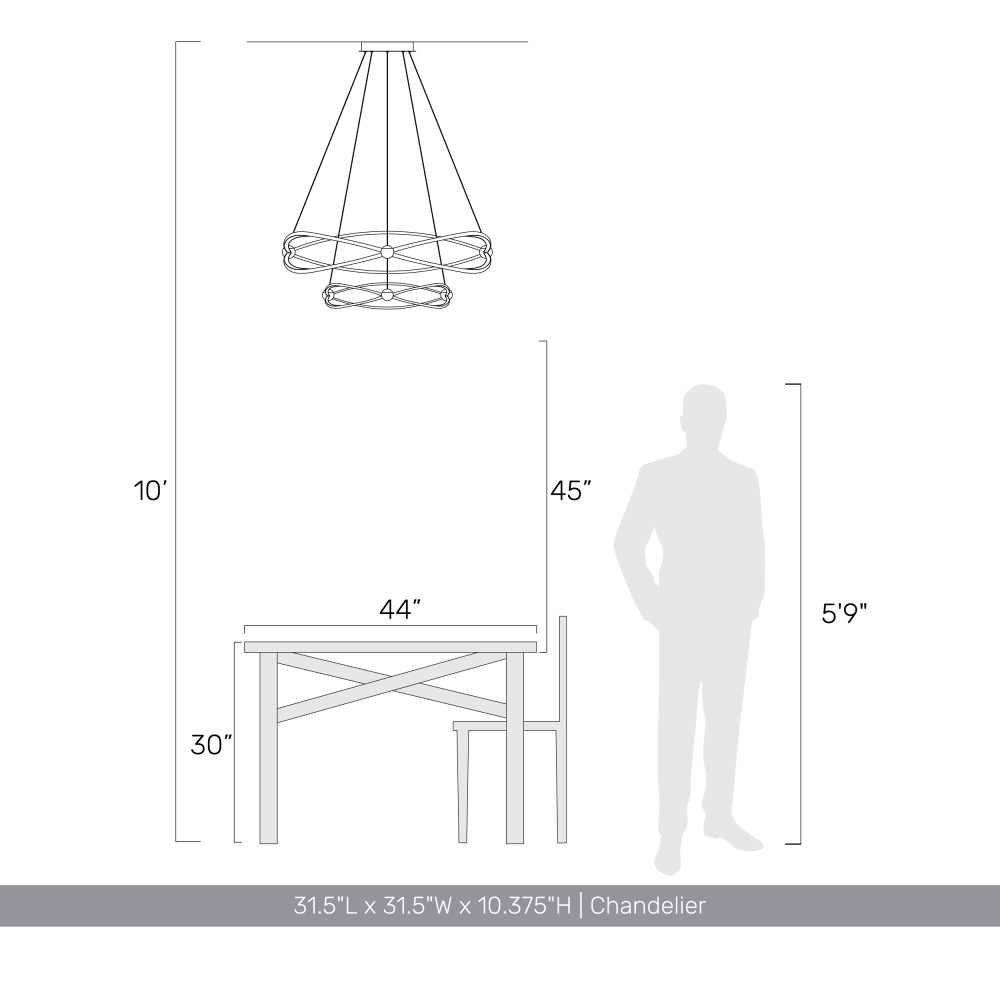 Bring modern elegance into your home with the Wry Lighting Spirale Integrated LED 32in Chandelier in Anodized Gold. Featuring an innovative design, it creates a welcoming atmosphere without the need for a shade. This chandelier’s style is defined by its abstract form and sleek profile, which add a touch of sophistication to your space. The Anodized Gold finish exudes quiet luxury with a velvety smoothness and elegant satin sheen that enhances the glow instead of glaring. Ideal for dining rooms and living spaces, this chandelier is dry location rated, making it perfect for indoor settings. Its sloped-ceiling compatibility allows for easy installation, while the adjustable height feature provides customization from 8.125" to 122". Dimensions: Overall Dimensions: 31.5"W x 10.38"H x 31.5"D. Integrated LED Technology offers 4377.2 lumens of warm 3000K lighting, ensuring brilliant illumination. Elevate your decor with this statement piece, designed for quality and contemporary flair.