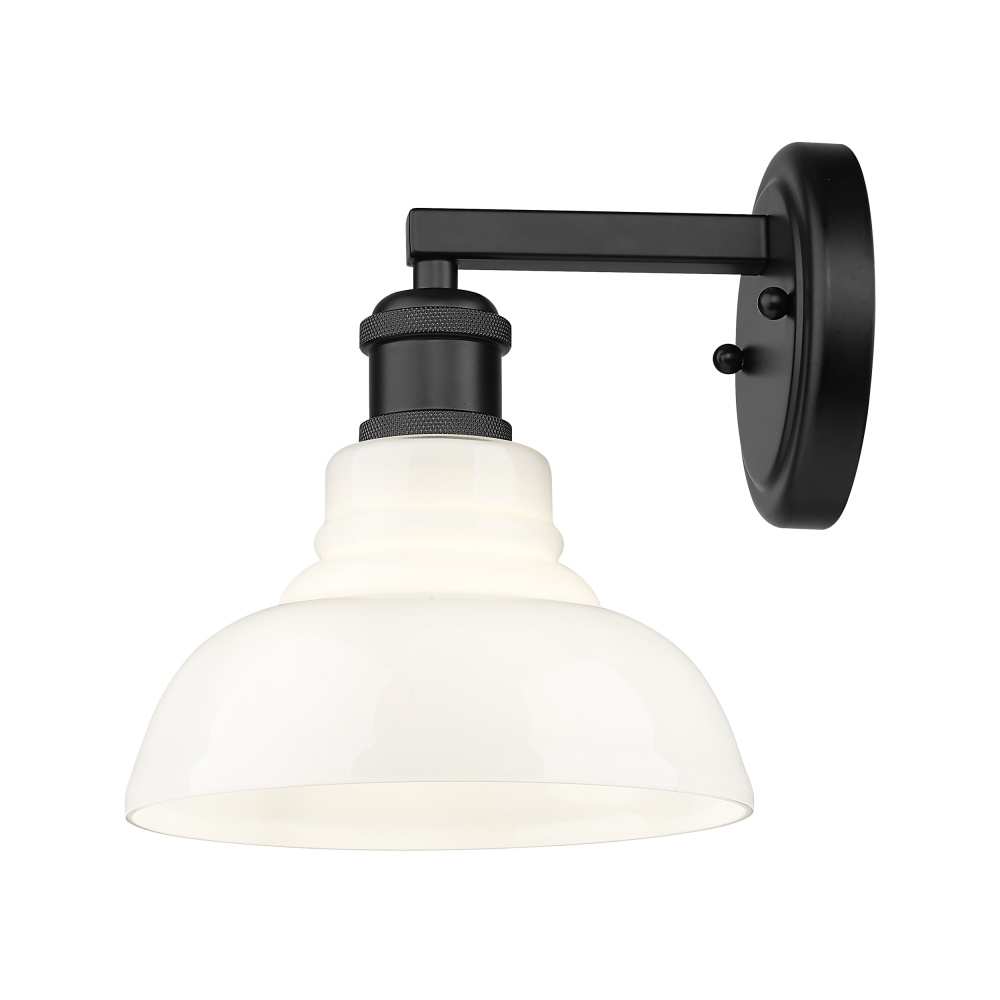 Yep by Golden Lighting Carver 1-light Vanity in Matte Black and Vintage Milk Glass