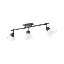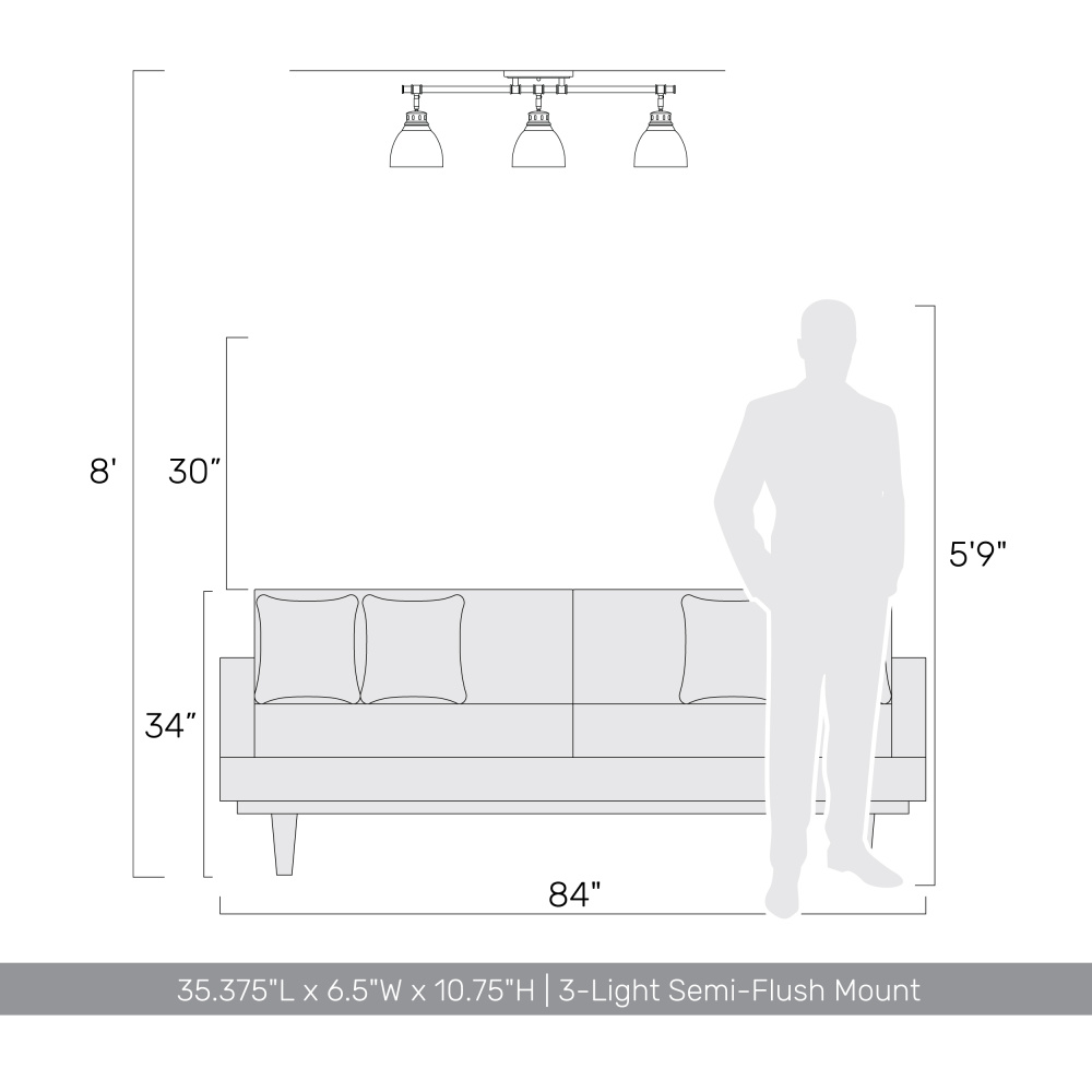 Bring a touch of elegance into your home with the Yep by Golden Lighting Duncan 3-light Semi-Flush Mount. Featuring a Clear Glass shade and a Rubbed Bronze frame, it establishes a sophisticated atmosphere. The Clear Glass shade provides unobstructed light, allowing the beauty of the bulbs and the fixture’s design to shine through, ideal for achieving a bright, clear ambiance. The Rubbed Bronze finish enriches the design with warmth and depth, making it versatile enough to complement different styles, from traditional to modern farmhouse. Perfect for entryways, bedrooms, kitchens, and living areas with mid-height ceilings, this fixture is Damp Location Rated, making it suitable for covered areas that occasionally experience moisture. Customize your lighting experience with flat directional heads for your specific lighting needs. Overall Dimensions: 35.38"W x 10.75"H x 6.5"D, Requires 3 E26 Medium base bulbs (not included), max 100 wattage per bulb. Elevate your decor with this beautifully designed fixture, where functionality meets style.