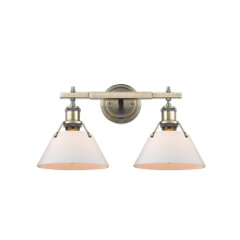 Bring industrial elegance into your home with the Yep by Golden Lighting Orwell 2-light Vanity. Featuring a metal shade and a pewter frame, it creates a welcoming atmosphere. The pine green shade contributes a deep, rich color that adds sophistication and charm, absorbing light to create an inviting ambiance. Our pewter finish enhances its timeless appeal, making it a suitable choice for various decor styles. This fixture is damp-rated, ideal for use in bathrooms, laundry areas, or covered porches. It requires 2 E26 medium base bulbs (not included) with a maximum wattage of 100 per bulb. Overall dimensions are 18.25"W x 9.88"H x 8.5"D, offering both functionality and aesthetic appeal, crafted with lasting quality.