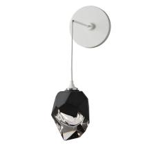 The Chrysalis Small Low Voltage Sconce features a small, handcrafted faceted glass crystal. You can custom-set the drop height, creating unique opportunities for vanity, beside and other applications. The Chrysalis’ trademark thick, clear layer of glass is encased in an outer layer of hand-blown, colored glass (matte black or white). Hand-polished like a gemstone, the lower portion of the outer layer of glass is removed to reveal the inner crystal clear layer below that is lit from within.