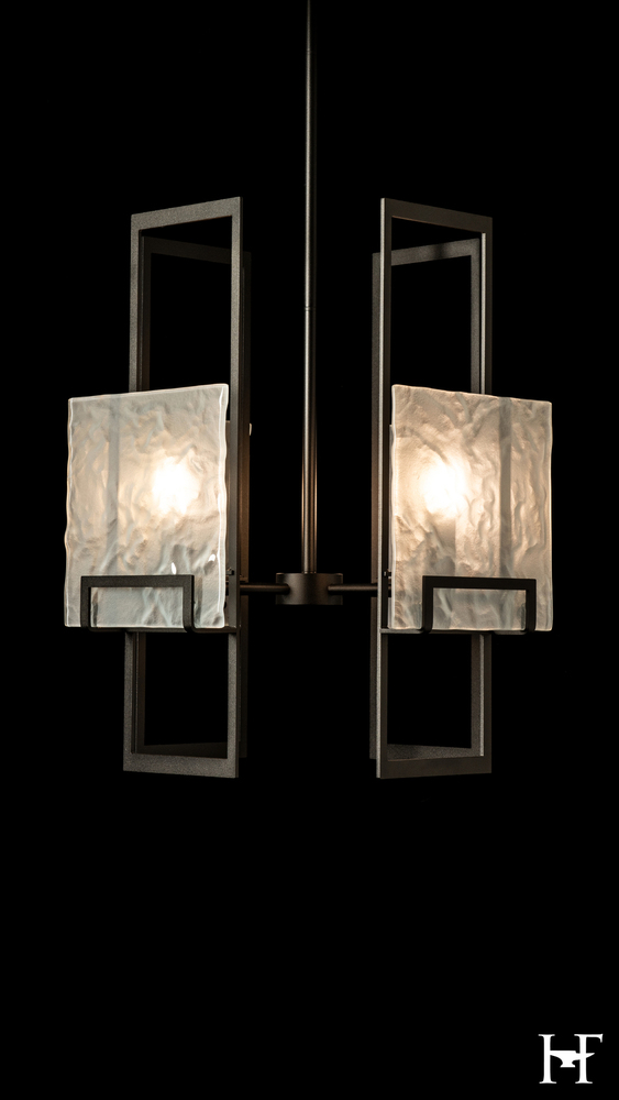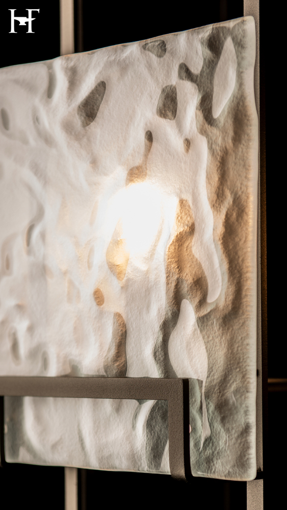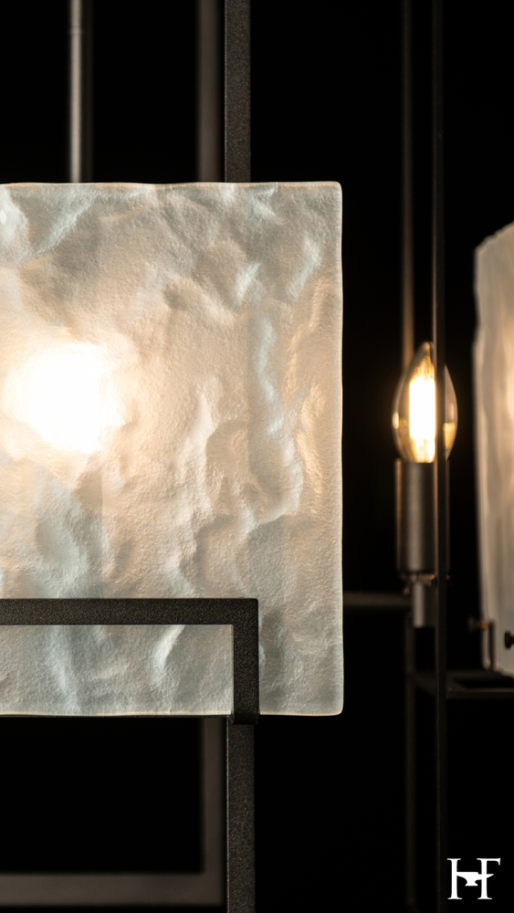 Inspired by the Arc lanterns, designer Ori Goldberg wanted to create a more contemporary, geometric lighting collection. By playing with the layering of glass, he was able to achieve a topographic aesthetic, with very clean, modern vertical steel rectangular elements.
