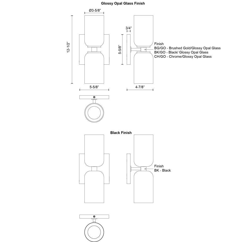 WS57712-BG/GO - Nola 3-in Brushed Gold/Glossy Opal Glass Socket Wall Sconce