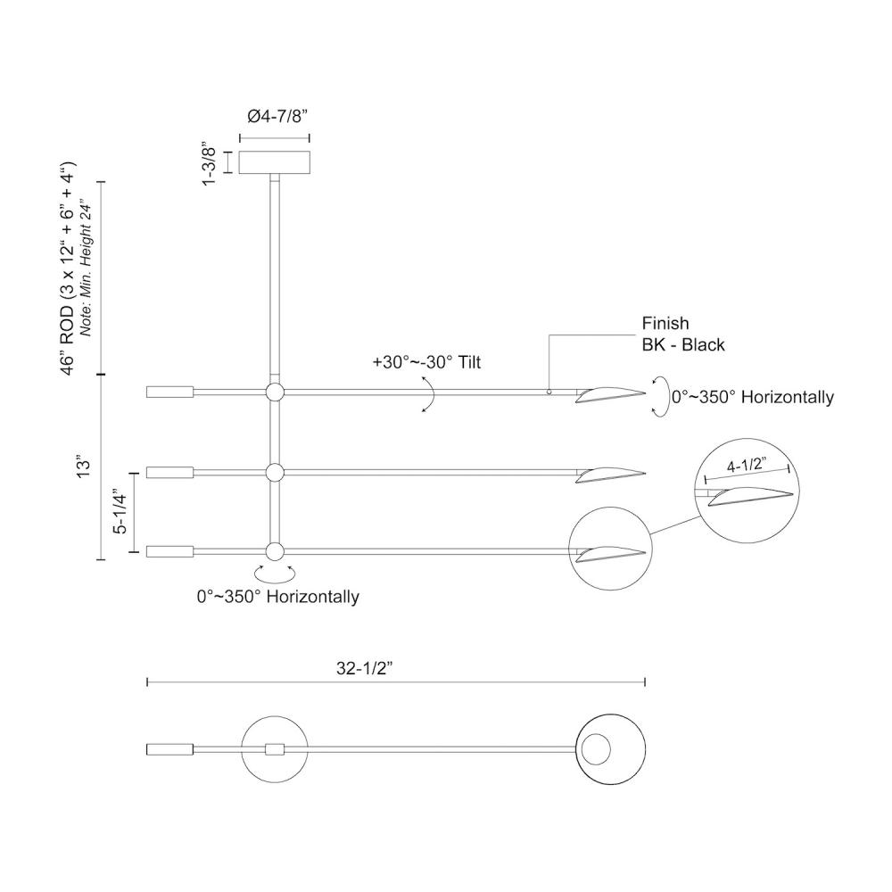 CH90132-BK - Rotaire 32-in Black LED Chandeliers