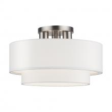 4 LT Brushed Nickel Extra Large Semi-Flush with Hand Crafted Off-White Color Fabric Hardback Shades