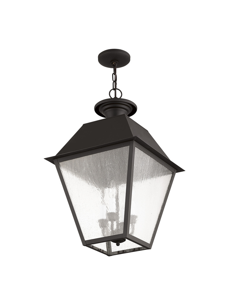 With stunning seeded glass and a bronze finish, this outdoor hanging lantern will make an elegant addition to any outdoor space. Formed from solid brass & traditionally-inspired, this downward hanging outdoor hanging lantern is perfect for a driveway, back porch or entry way.
