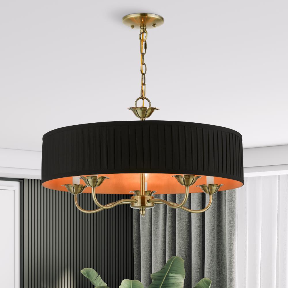 41865-01 - 5 Light Antique Brass Pendant Chandelier