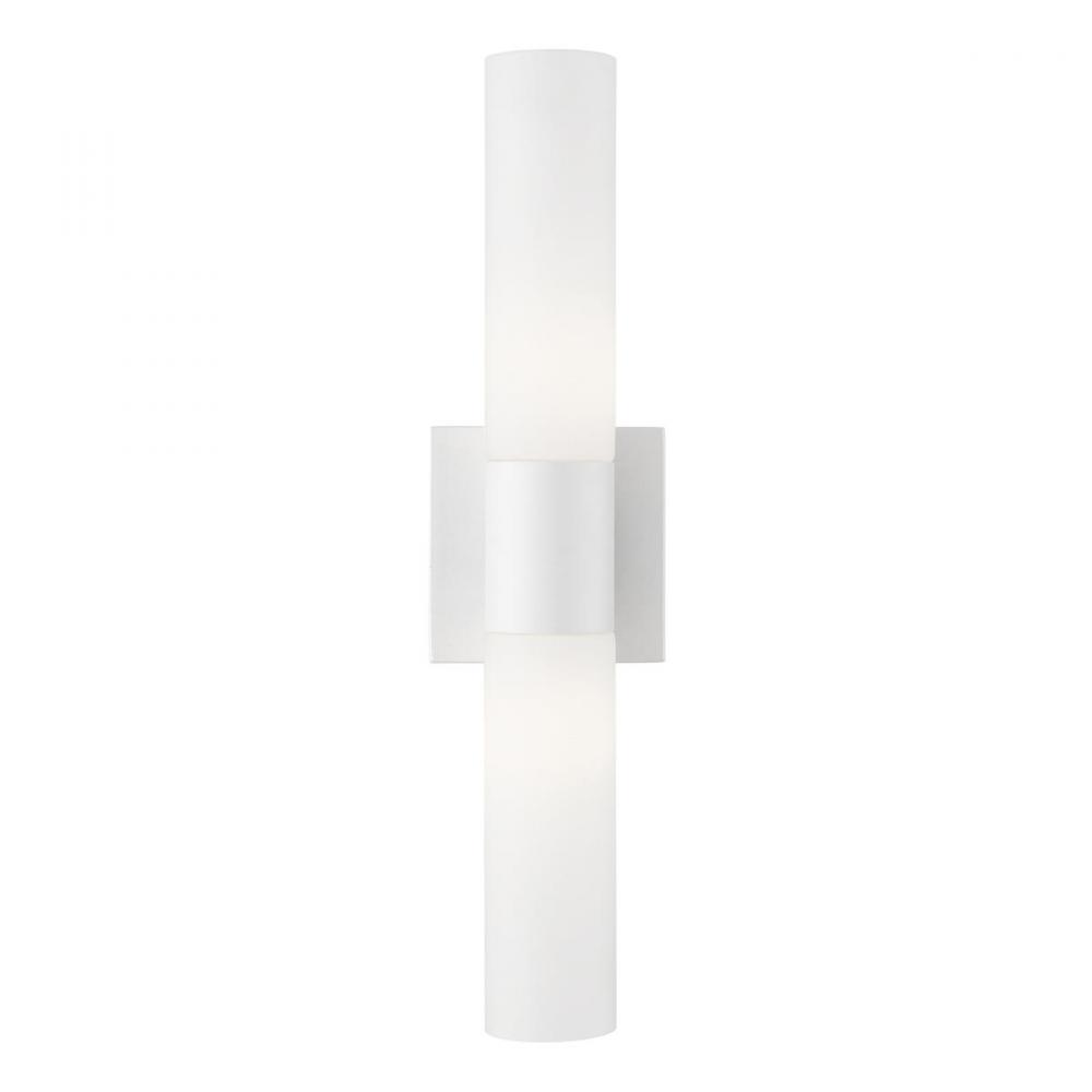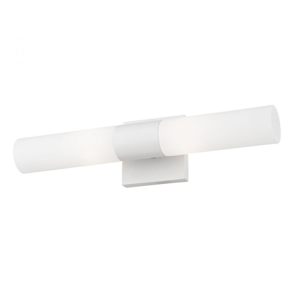 With the sleek contemporary design, the Aero bath bar casts a soft, flattering light which can be mounted horizontally or vertically. The tubular etched opal glass diffuses the light of two lamps.