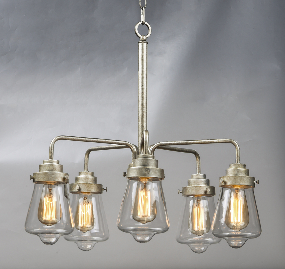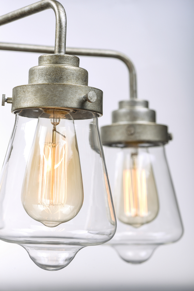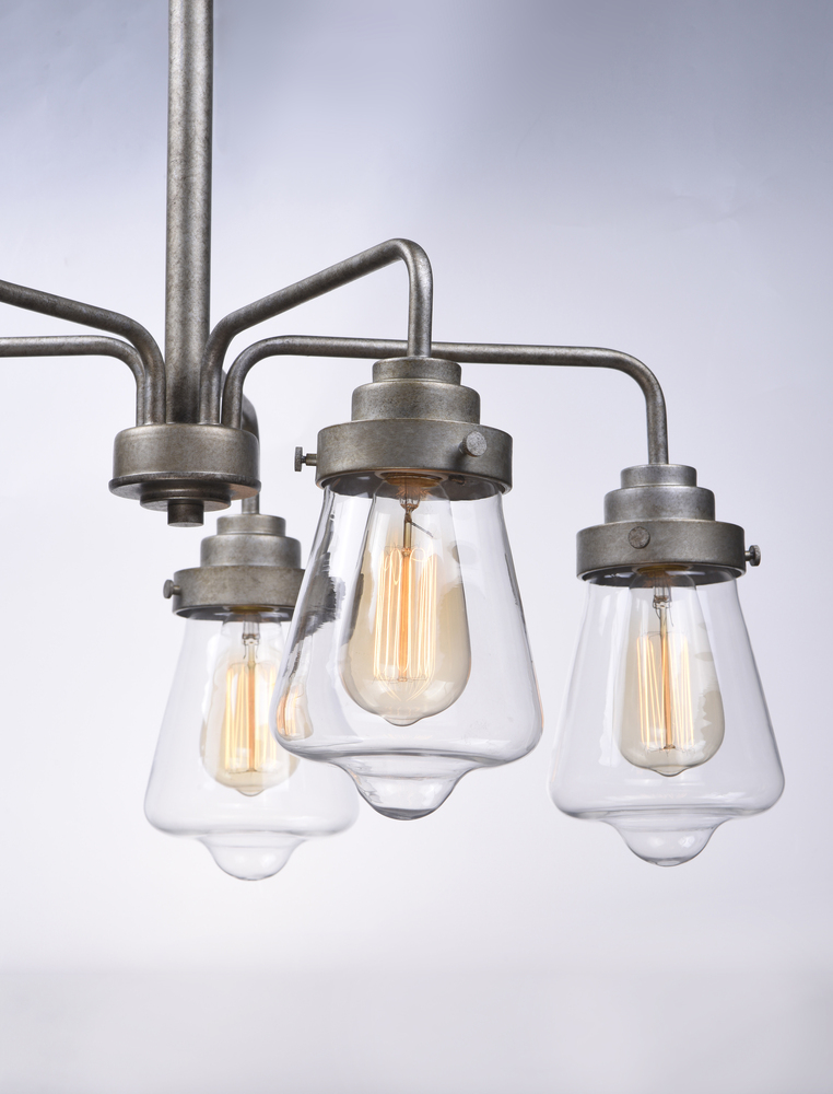 A rustic styled frame of Weathered Zinc finish supports Clear lantern shaped glass. This transitional look spans several style genres from nautical to vintage.