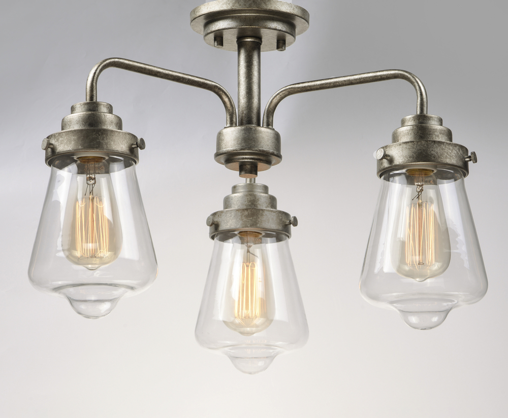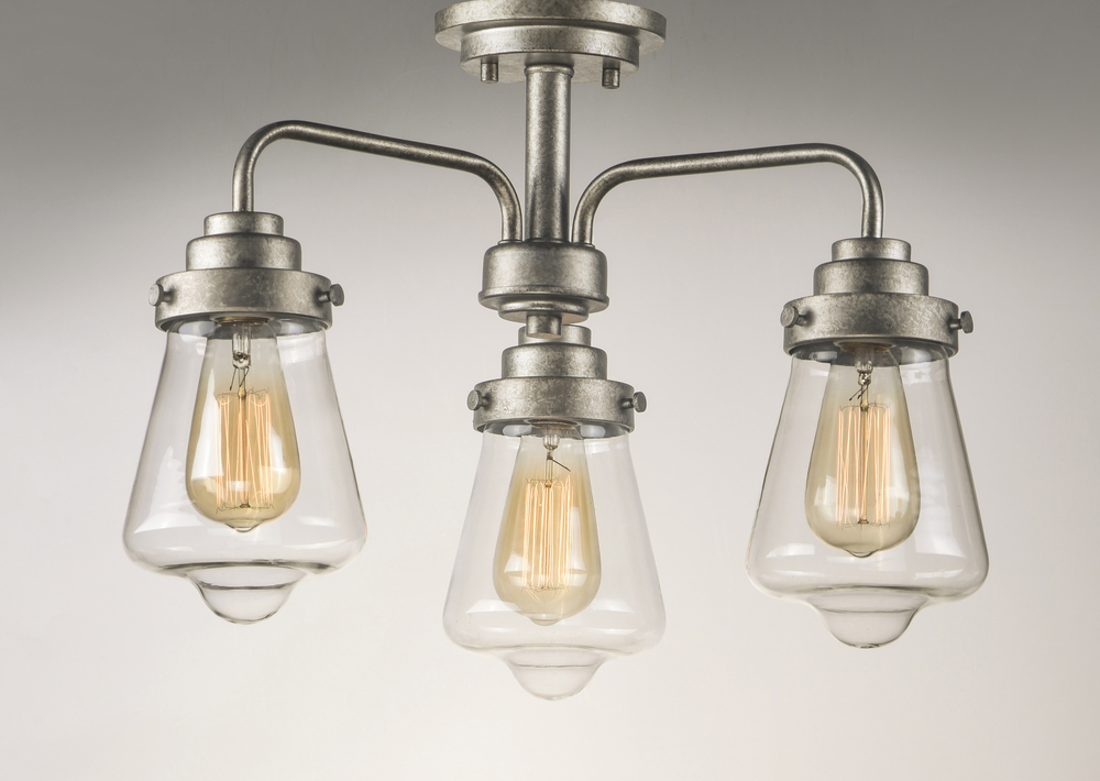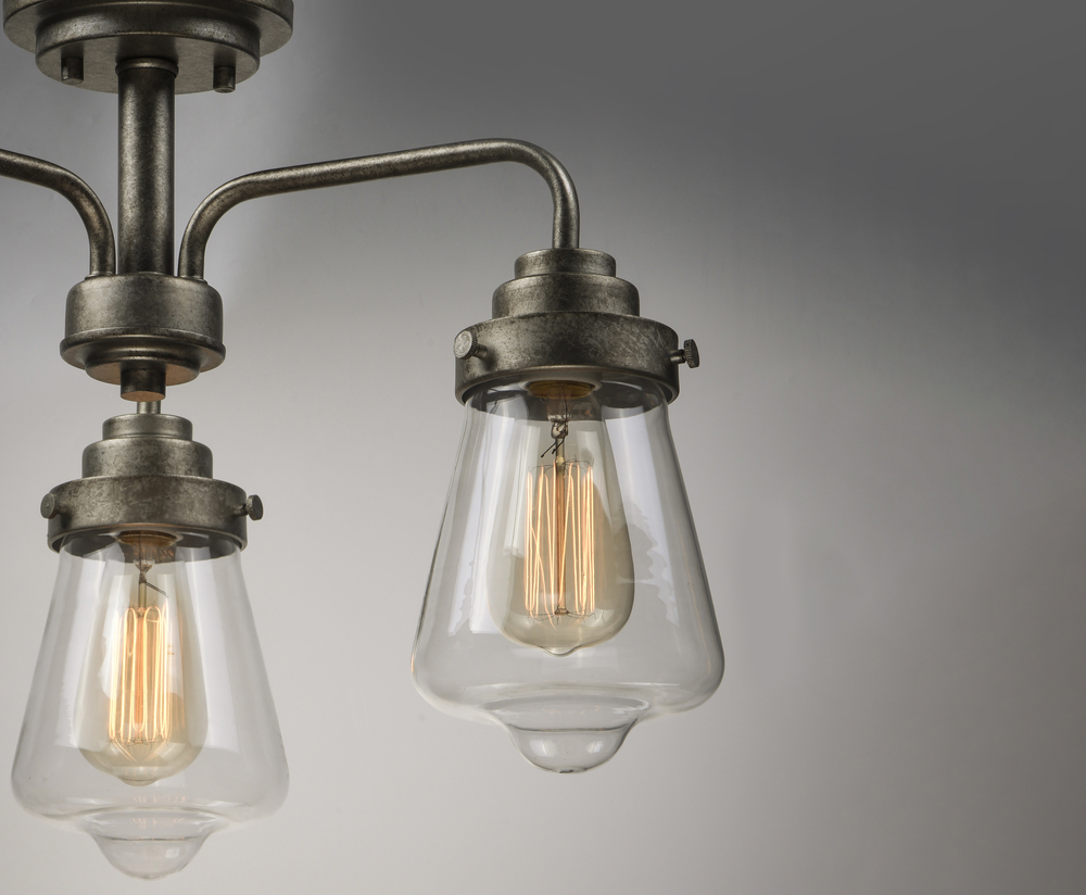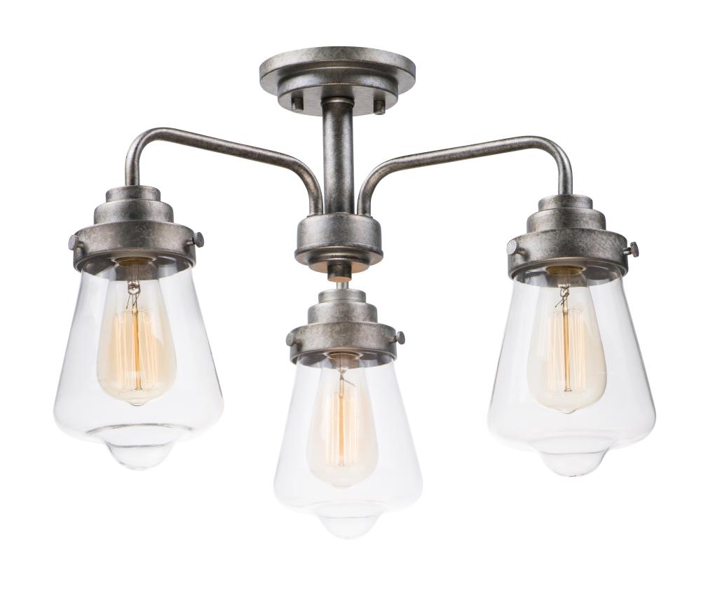 A rustic styled frame of Weathered Zinc finish supports Clear lantern shaped glass. This transitional look spans several style genres from nautical to vintage.