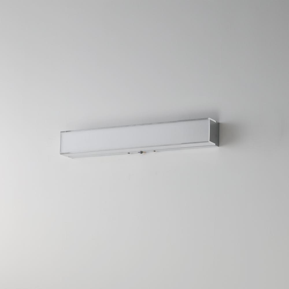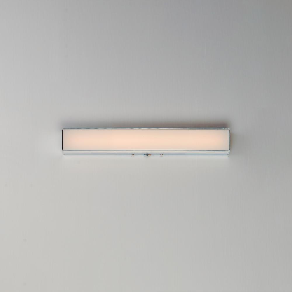 Defined by its contemporary edge, this series of flush mounts and wall sconces features a layered dimensional shade of acrylic. The thick miter cut Clear acrylic encases an inner opal White diffuser that is evenly illuminated by a high-powered integrated L