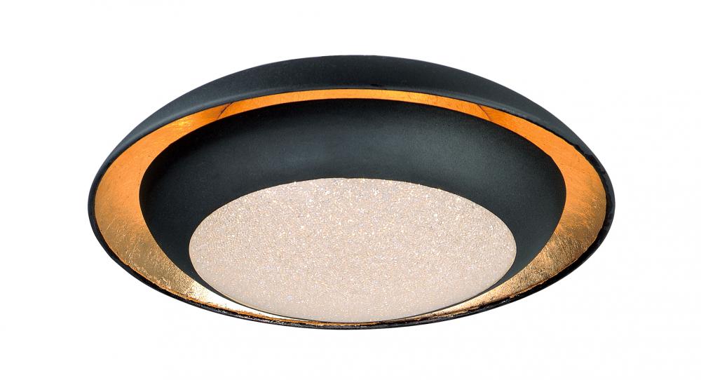 Domes of metal house a circular light engine housing with a Crystaline diffuser. A dramatic lighting effect is created with in-direct light highlighting the foil lining while direct light shines through the sparkling center. Available in your choice of Whi