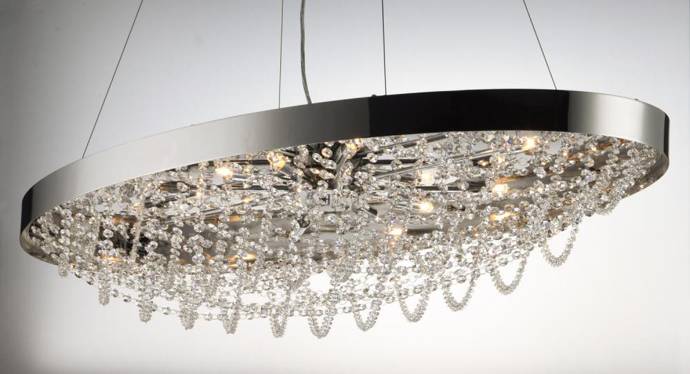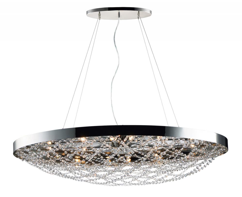 Not your grandmothers crystal but a modern approach featuring clean stainless steel frames finished in Polished Nickel and woven stands of high quality Beveled Crystal that shimmer under the brilliance of high power xenon lamps included. These fixtures com