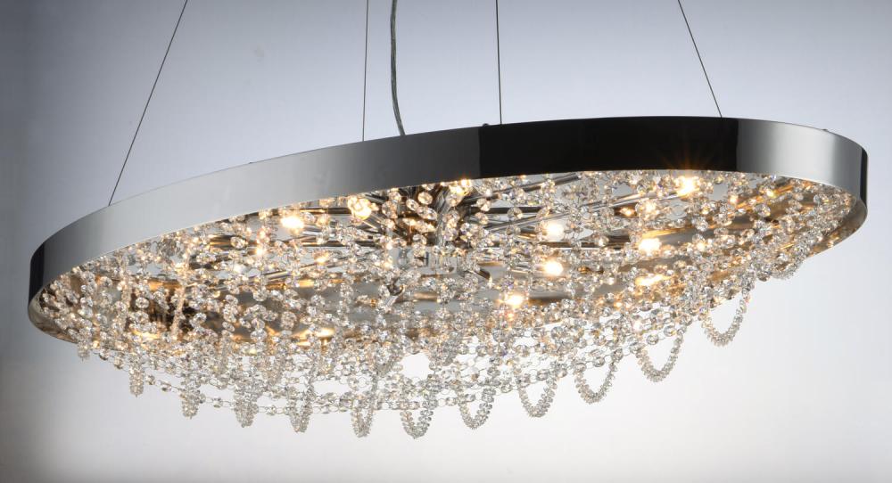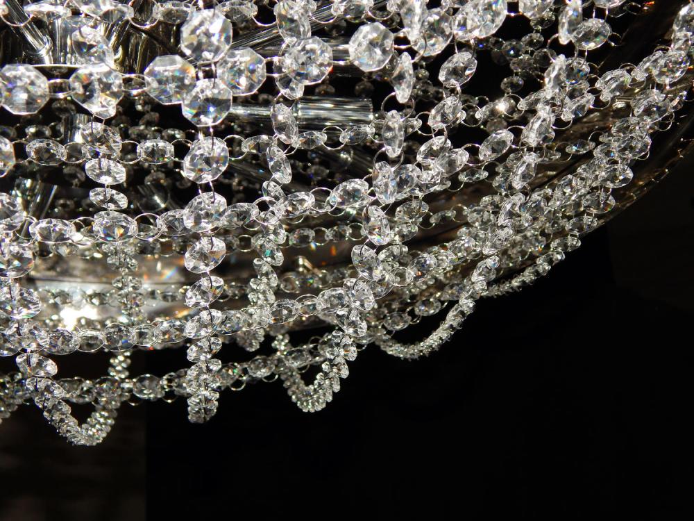 Not your grandmothers crystal but a modern approach featuring clean stainless steel frames finished in Polished Nickel and woven stands of high quality Beveled Crystal that shimmer under the brilliance of high power xenon lamps included. These fixtures come pre-draped for quick and easy installation.