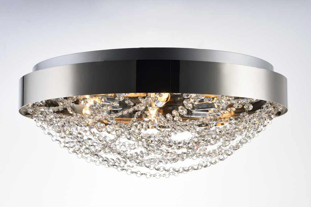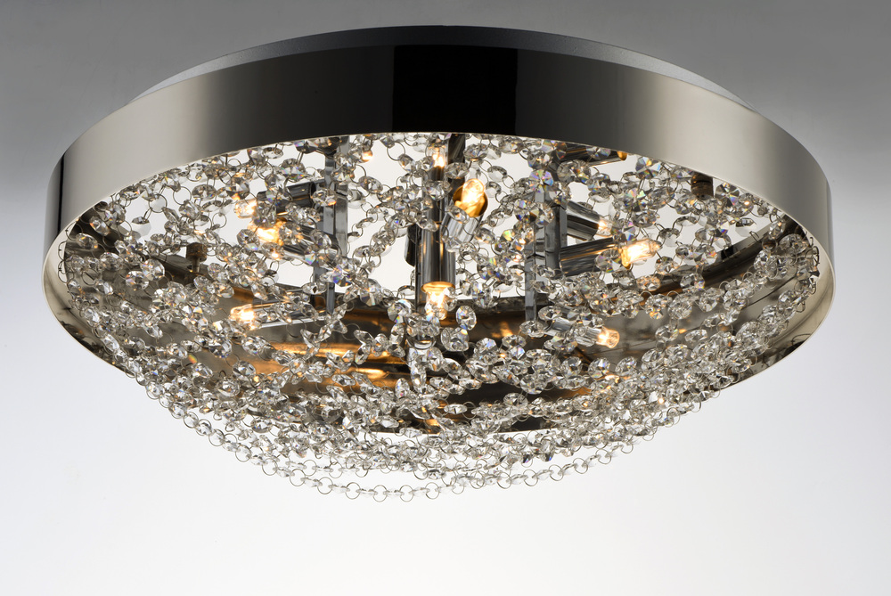 Not your grandmothers crystal but a modern approach featuring clean stainless steel frames finished in Polished Nickel and woven stands of high quality Beveled Crystal that shimmer under the brilliance of high power xenon lamps included. These fixtures com