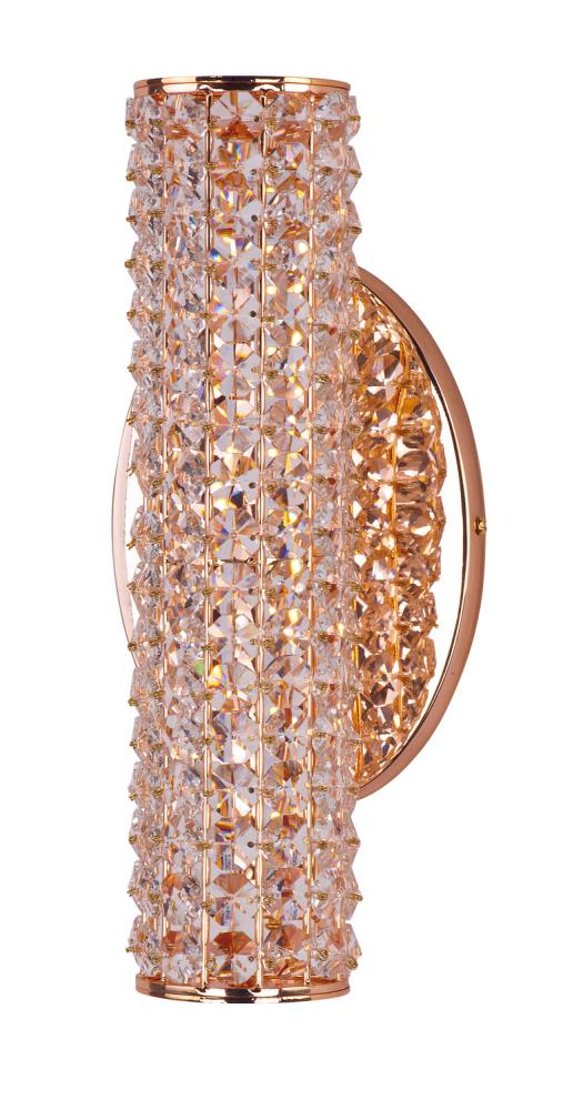 Clear Beveled Crystals Are Strung Onto A Continuous Wire And Wrapped Over A Tubular Metal Frame Finished In Your Choice Of A High Luster Polished Chrome Or Vibrant Rose Gold. Hidden Within The Tubular Frame Is A LED Light Source, Which Not Only Adds Beauty And Sparkle To The Crystal, But Adds Ample Light For The Vanity.