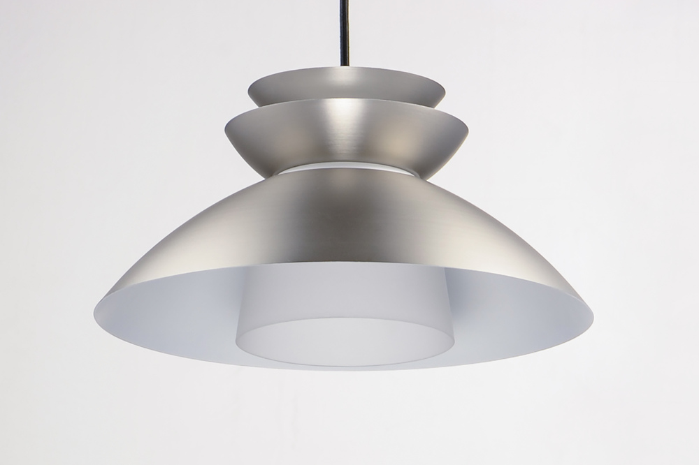 Inspired by classic Scandinavian design, these metal spun pendants of Black, White and Brushed Platinum feature mixed materials such as opal white glass or natural elements like Walnut finished wood and leather straps.