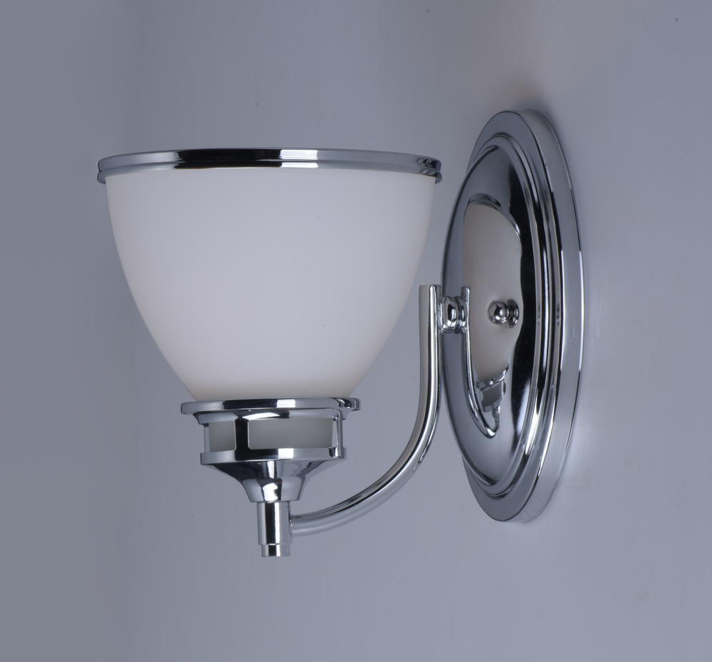 A complete collection of builder driven lighting features sweeping arms that support bowl shaped Satin White glass shades. The shade support reveals the glass above for an interesting design element. Available in Polished Chrome for contemporary and tran