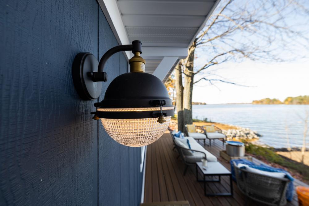 This nautical design features a solid dome of aluminum finished in Oil Rubbed Bronze with solid brass hardware finished in Antique Brass. The Clear prismatic glass diffuser completes the authentic look of this outdoor collection.