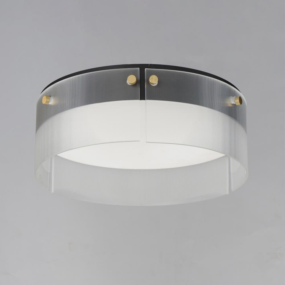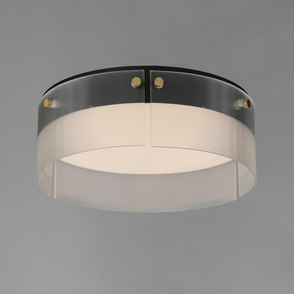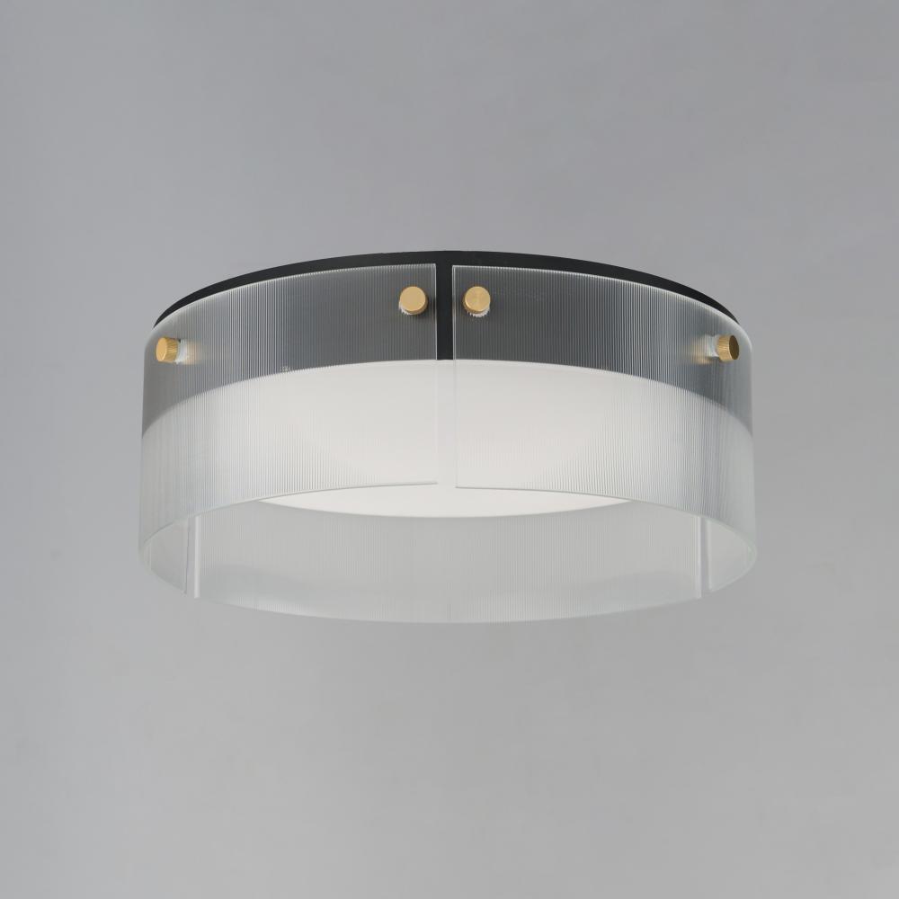 Panes of clear ribbed glass are secured with oversized knurled Natural Aged Brass pins on a Matte Black frame. Obscured by the glass texture, the integrated LED is not only soft on the eyes but also provides an abundance of illumination. Varied configurati