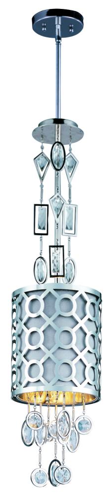 A Geometric Pattern In A Frame Of Stainless Steel Finished In Polished Nickel Is Contrasted By An Inner Slate Fabric Shade. Geometric Shaped Cast Pendants Frame Custom-Made Crystals, Adding Brilliant Accents Throughout The Fixture.