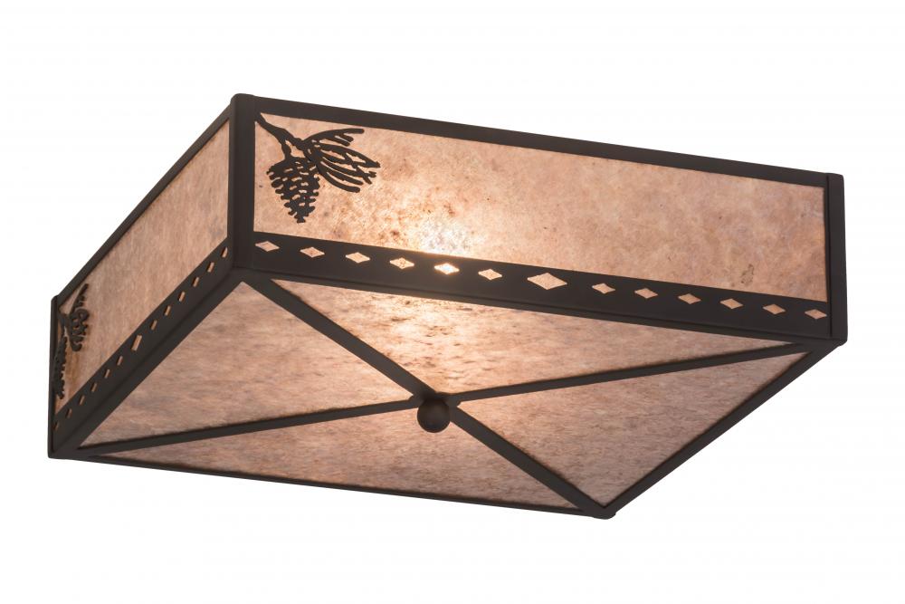 Simple clean lines and a handsome profile are combined to create this Diamond Craftsman ceiling fixture which is accented with Balsam Pinecones and Pine Needles. Stunning Silver Mica is highlighted with an alluring diamond pattern border; which is enhanced with a steel frame; accents and hardware featured in an Oil Rubbed Bronze finish. Handmade in the USA; custom options include a wide range of colors; styles and sizes; as well as dimmable energy efficient lamping options such as LED. The ceiling fixture is UL and cUL listed for damp and dry locations.