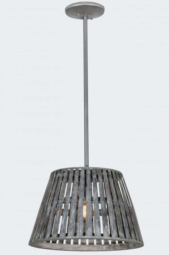 Elegant charm blends with rustic beauty. This unique ceiling pendant is inspired by vintage peach baskets traditionally bound with wooden staves and used for gathering peaches; apples and other fruits. Not just a popular fruit; the peach symbolizes immortality and long life. The pendant features the shade in a Weathered Wicker finish and the hardware with a Nickel finish.The overall height ranges from 15 to 42.5 inches as the stem length can be adjusted in the field to accommodate your specific lighting application needs. Handcrafted by highly skilled artisans in our 180;000 square manufacturing facility in Yorkville; New York. Shade colors; metal finishes and sizes can be customized. UL and cUL listed for dry and damp locations.