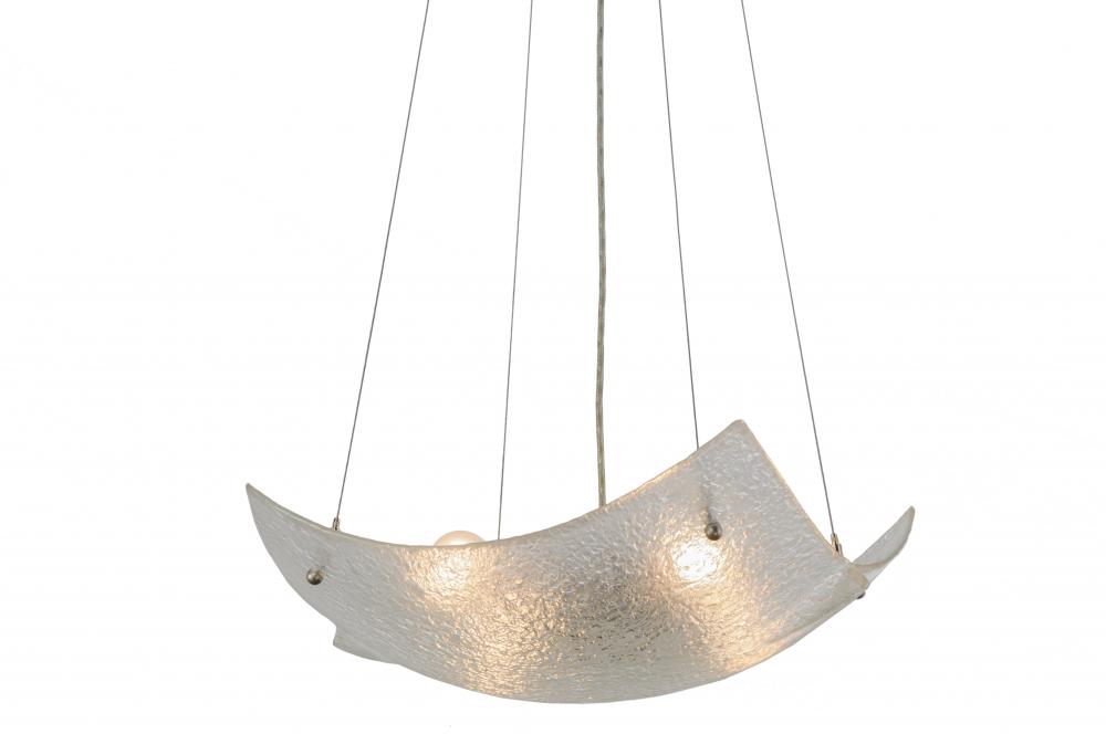 Hot glass sculpted into a cool contemporary lighting design. Clear Crinkled textured fused glass features a crystallized ice-like hue and innovative shape that evokes a lofty look of flight in mid-air. Ideal for dining and living rooms; kitchens and lounges; boutiques; restaurants and lobbies. Custom crafted by Meyda artisans in our Yorkville; NY manufacturing facilities. Custom designs; colors and shapes. Energy efficient lamping options.
