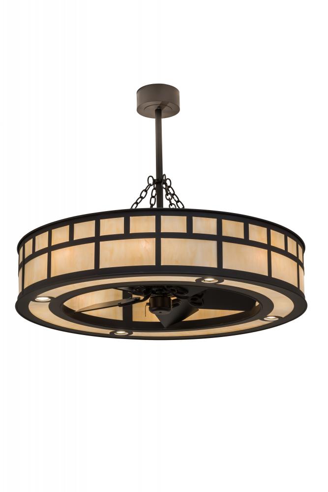 A distinctive; fan-tastic decorating idea for a home; retailer or hospitality location; this dual-function lighting/fan innovation features a custom design integrated with energy efficient technologies. Handsome Sahara Taupe Idalight is complemented with Oil Rubbed Bronze finished hardware. 4 downlights provide task lighting on surfaces below; 4 uplights deliver ambient illumination; and 8 inner lights bring out the beauty of the Idalight diffuser. Handcrafted in Yorkville; New York. In summer; the fan pushes down a windchill that circulates to keep the space cool and comfortable. In winter; the fan is reversed to pull the room air up towards the ceiling and force the warm air back down and circulate to create warmth. UL and cUL listed.