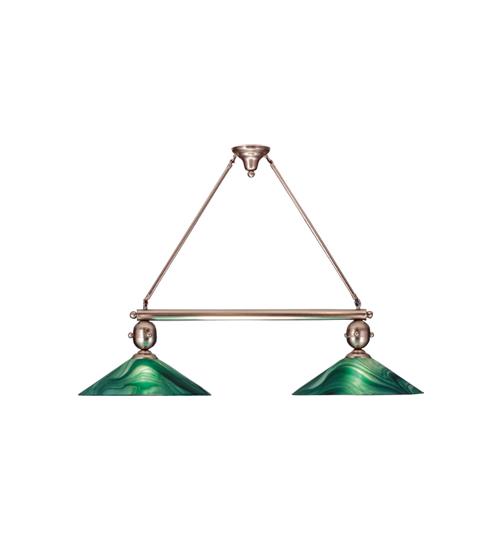 The stylish Metro two light Deco Ball island pendant with cone shaped baroque art glass shades in a Mint Green and Sugar White toned Mente Swirl finish with Brushed Nickel finished hardware will make your urban nights bright.