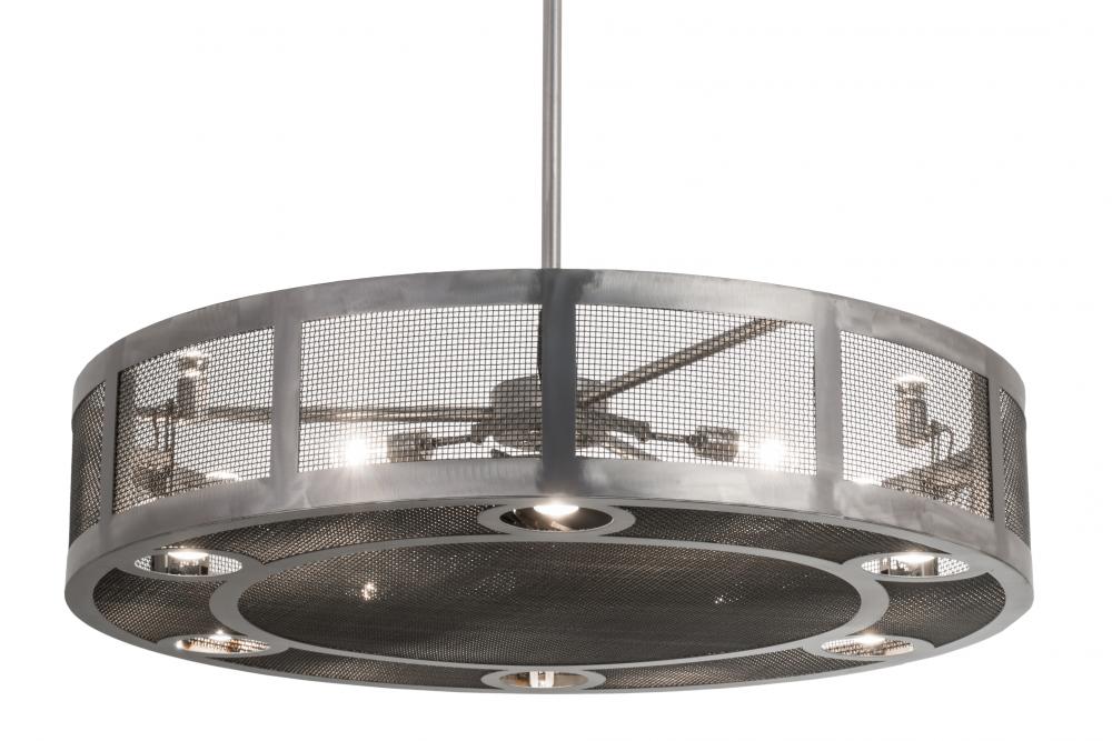 Handsome styling meets engineering innovation. This fan-tastic; energy-efficient decorating idea for a home; retail or hospitality location features a custom crafted Chandel-Air design with a caged frame and mesh. The solid steel hardware and grill is featured in a Steel finish. The modern marvel combines a ceiling fan within a handsome lighting fixture that features 6 downlights for task downlighting and 6 uplights for ambient lighting. Handcrafted in Yorkville; New York; this energy-saving "Chandel-Air" creates a windchill to keep the space cool in the summer; and is reversed in the winter to push down hot air and maintain warmth. Dimmable energy efficient lamping options; as well as custom sizes; styles and colors; are available. UL and cUL listed for damp and dry locations.